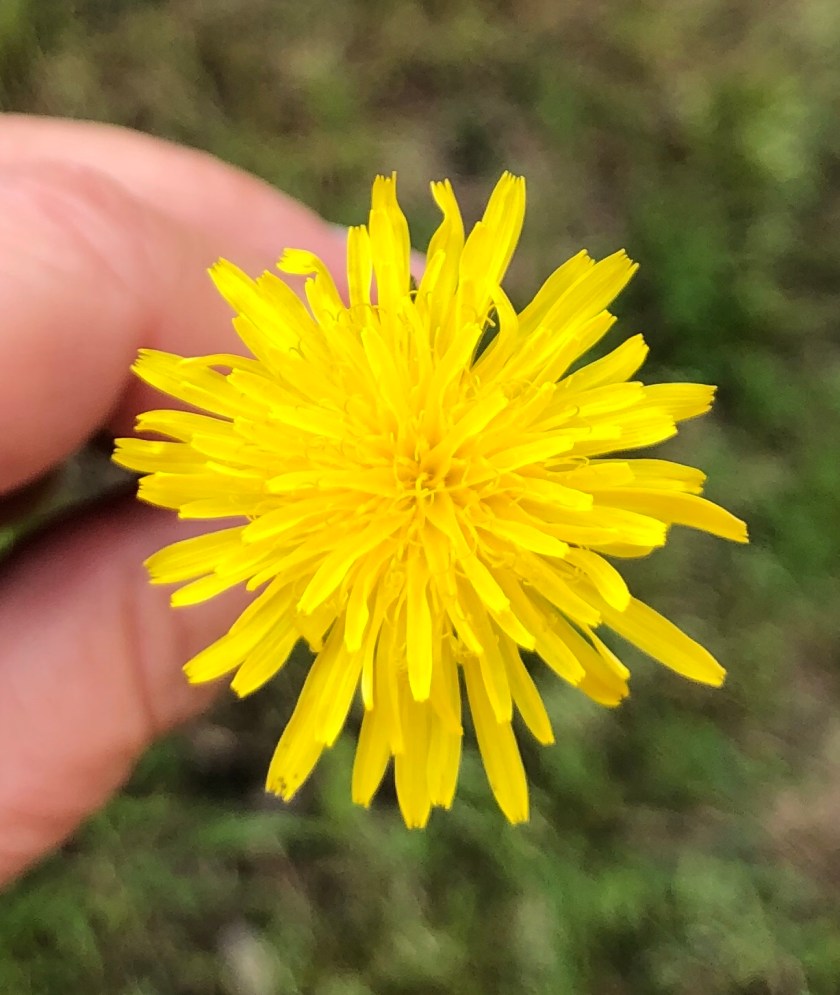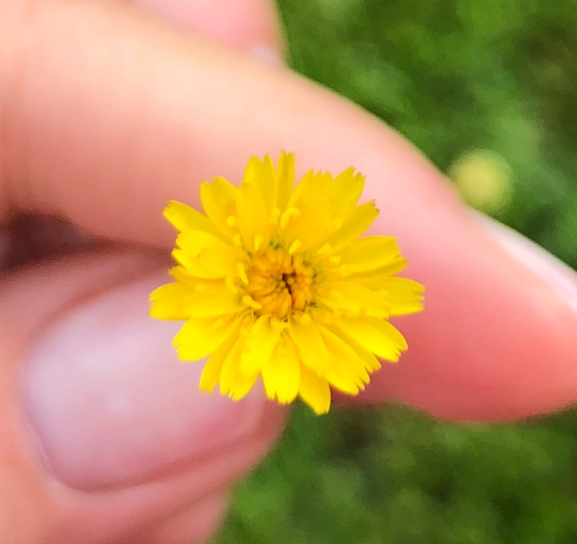 Smooth Cat’s Ear. Hypochaeris glabra. Looks like a teeny dandelion on a very long stem. Compare to the first dandelion and you’ll see how small it is.