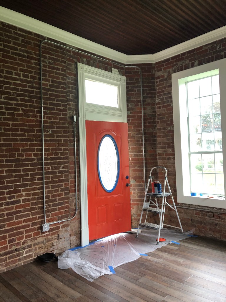 The two doors that look like this were added when the new windows were added. Just for fun, we’re making them red. Eventually we will make them gone.