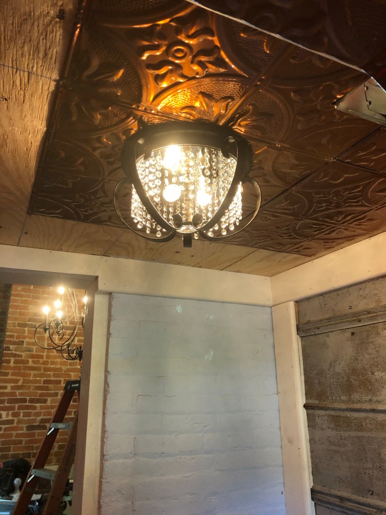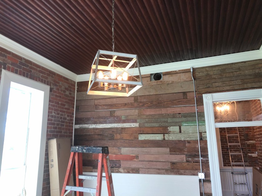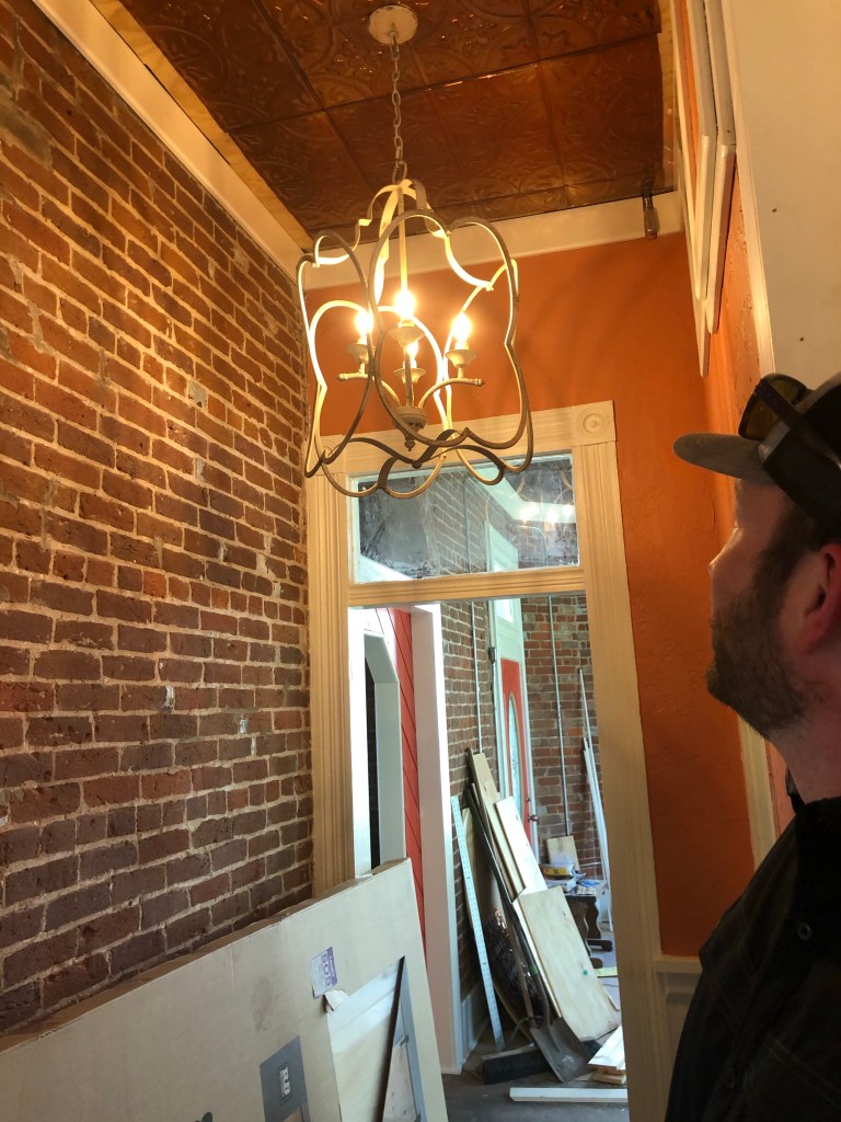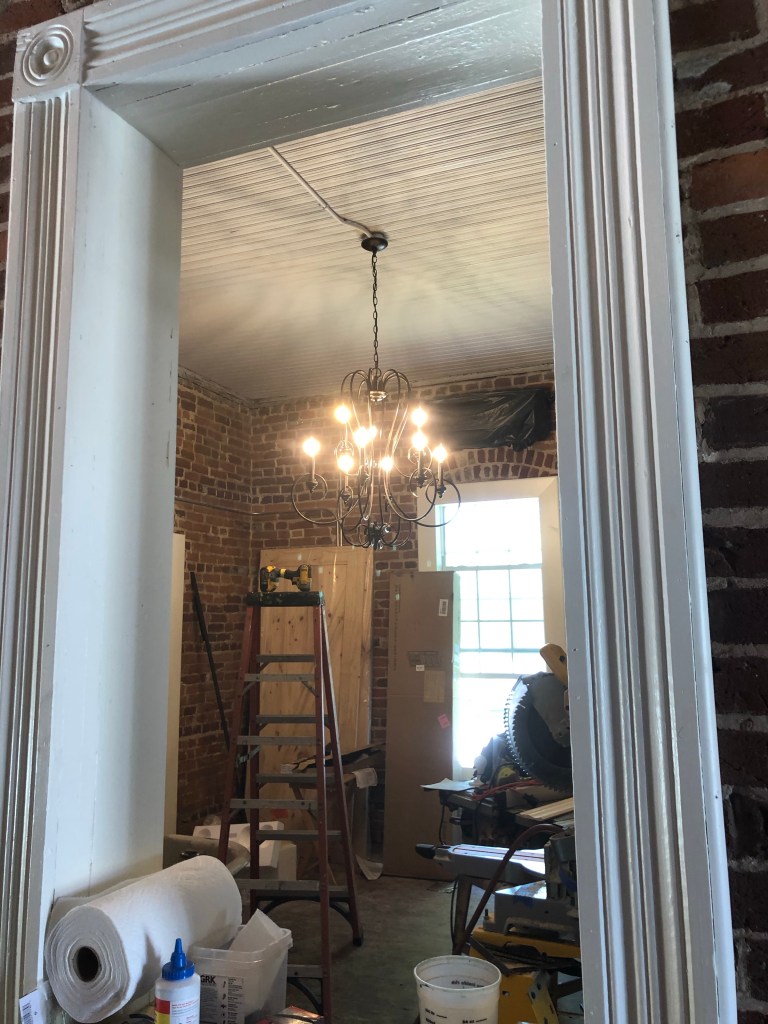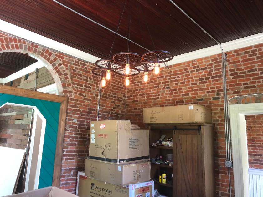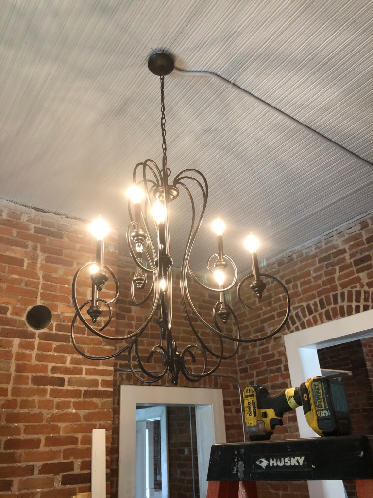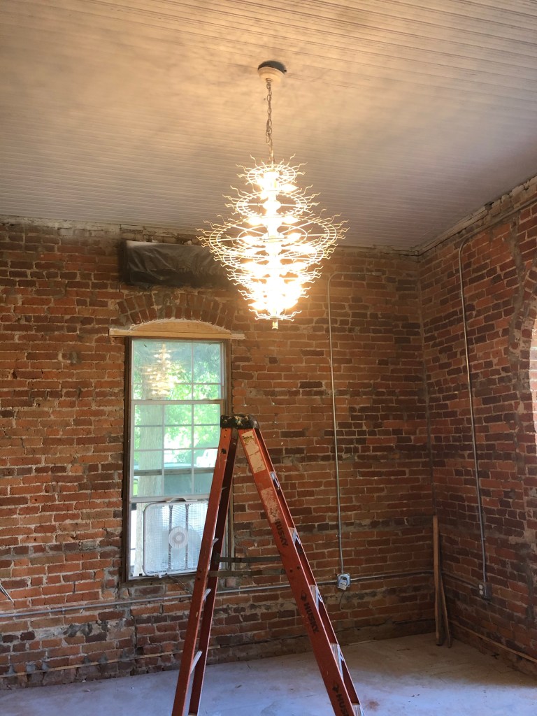 It’s hard to know where to start, but I’m going to say how happy I am with how my office chandelier came out (I won’t add the bling until the floors are done).