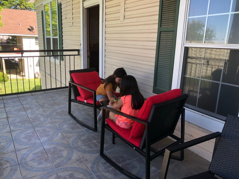 These cute little girls came, and I entertained them on the porch with coloring stuff.