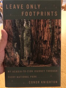 Tell ya what, this sheltering in place stuff has really helped me get a lot more books read. Last night I finished the latest of my series of “hot off the presses” books (the next few will be older books). Today’s recommended reading is Leave Only Footprints: My Acadia-to-Zion Journey through Every National Park, by Conor Knighton. When I saw this one in “new books,” it looked just right for a nature-lover like me, so I had to get it.