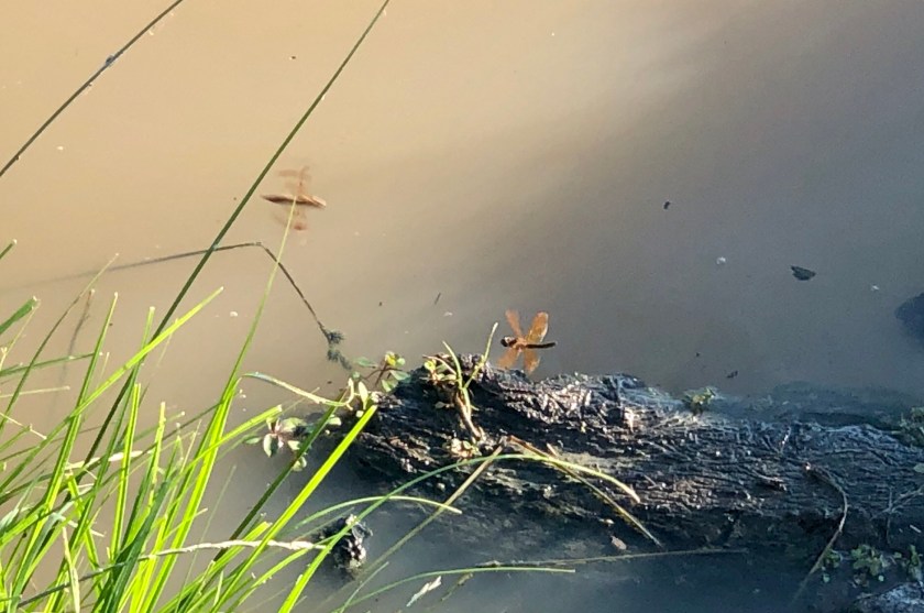 I observed a damselfly or two, but they were really far away. Certainly looking at these insects while watching the dogs splash around in the pond is a great way to relax. And no dogs were stuck in cars yesterday!