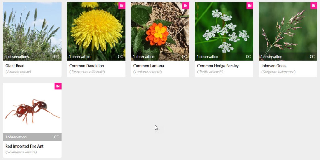 Happy National Invasive Species Week everybody! Whee! I don’t know if we are supposed to celebrate them or deplore them this week, but I’m celebrating along with naturalists in the US, I guess. What I’m doing is participating in the Texas Invasive Species Bioblitz 2020 on iNaturalist. The project’s goal is to identify the locations of as many invasive plants, animals, etc., as possible in one week.