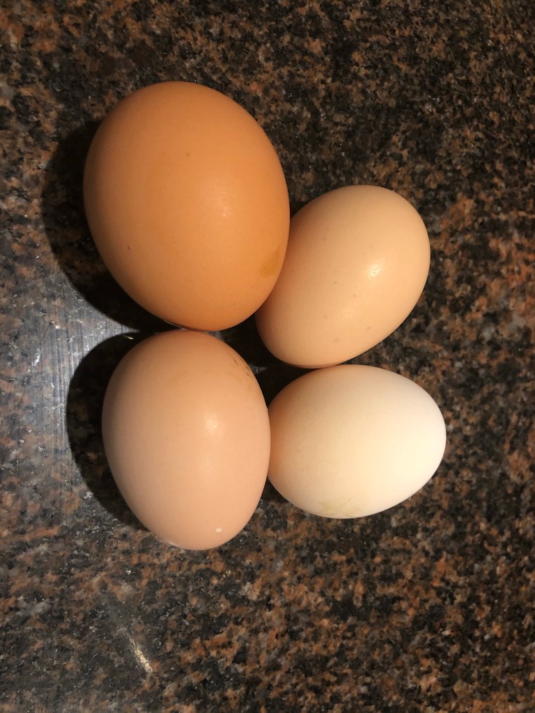 The other Cochin, Lacy Legs, did start laying, and produced small white eggs that shaded to brown. Note that I said produced.