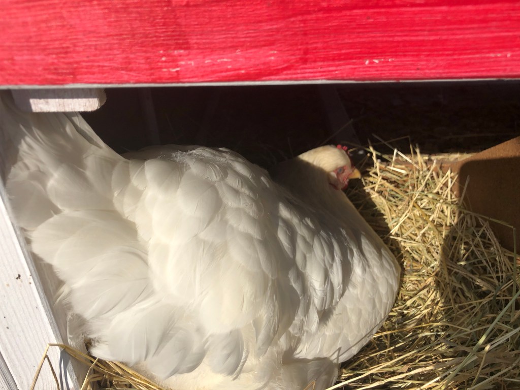This week she went broody! Geez, she barely started laying! So now she won’t come out of the roosting area and makes laying hard for the other chickens, who all want to use the same nest box.