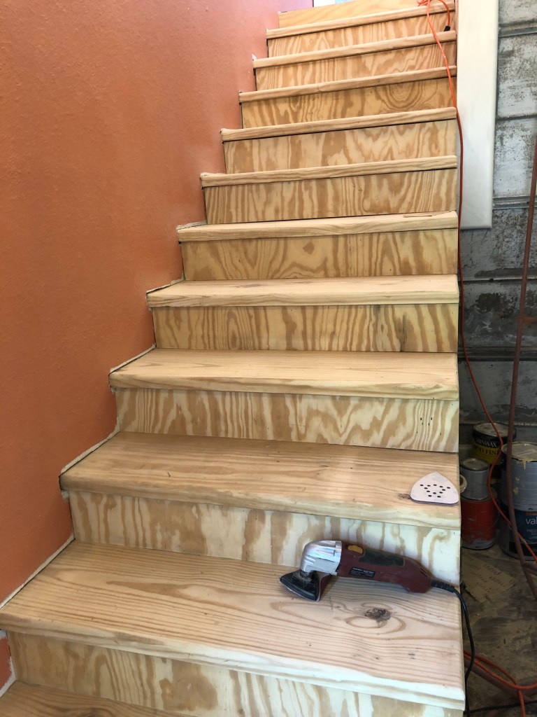 Of course, Chris got a lot more sanding in than I did. He did ALL the stairs.