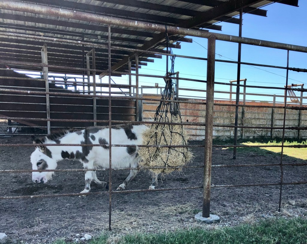 Once he got in, he found his hay dispenser and noshed a bit. I’d emptied out Fiona’s water tub, because it had mosquito larvae in it. He checked that nice clean water out and enjoyed the cool dirt.
