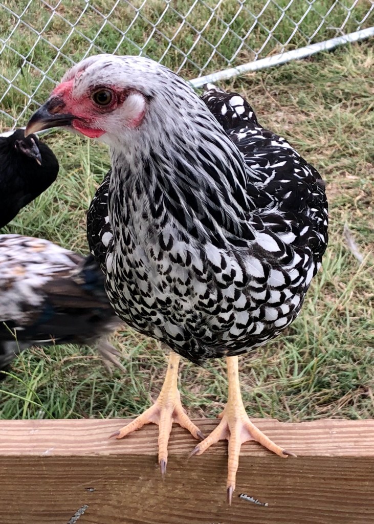 They don’t eat out of my hand like the other three hens, but Patty is especially friendly. She’s also very beautiful, even though she’s still the smallest.