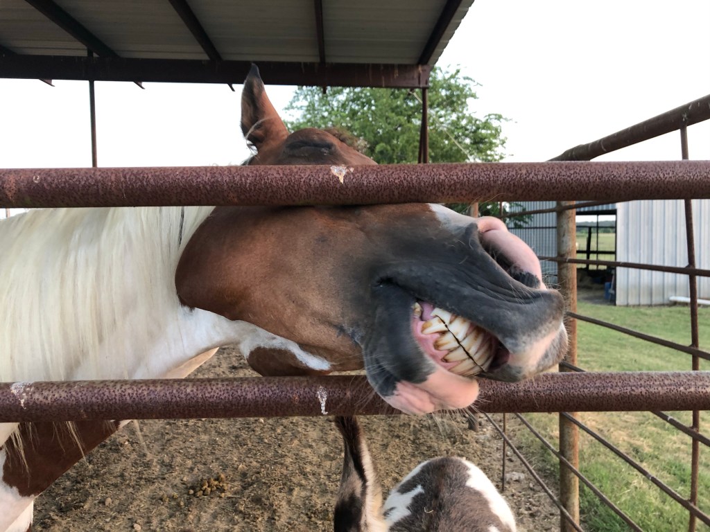 Tonight Chris and I went to feed the horses, and cows were getting moved, so I needed to take Apache and Fiona out. Apache walked like a normal horse and didn’t try to stop every three steps to eat. Whew.