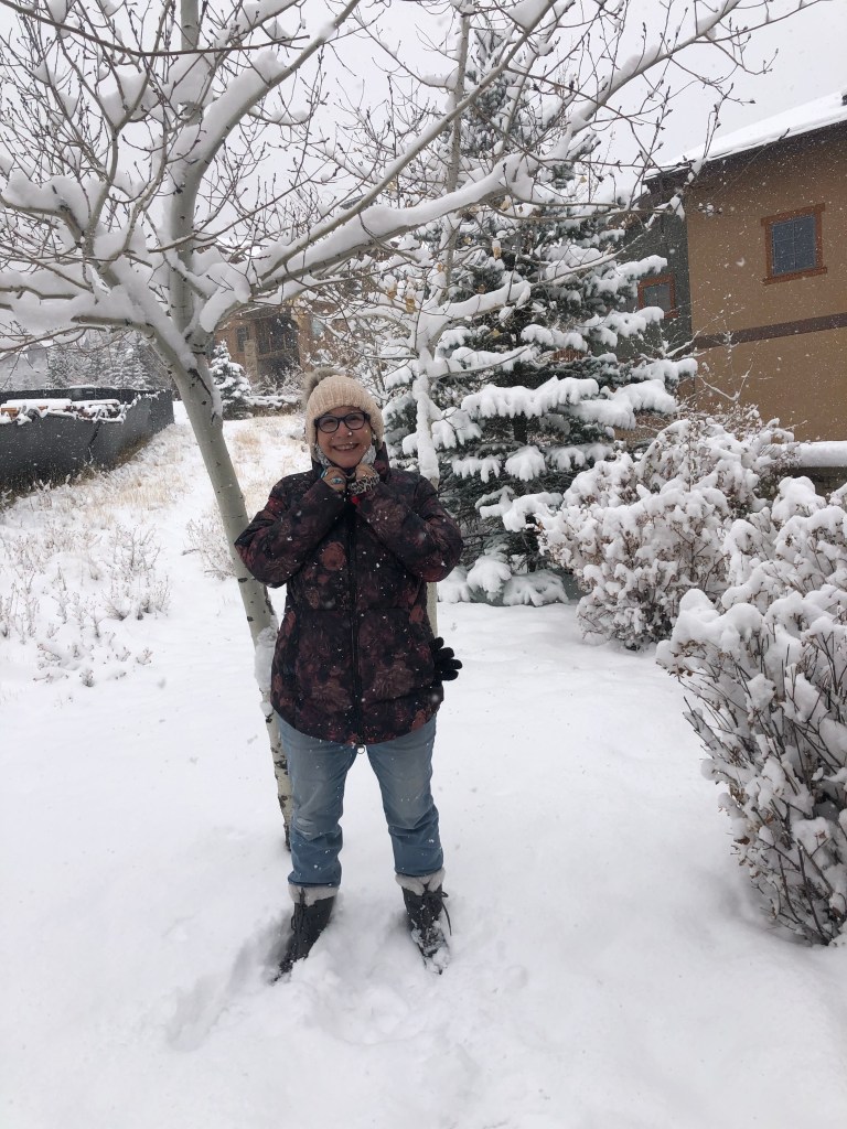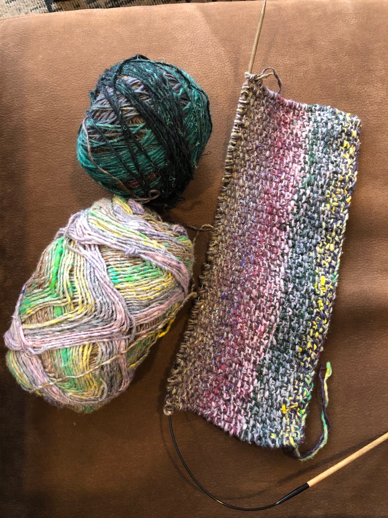 Honestly, I’d never considered taking time off in a cold place until the time we went to New Mexico during a winter heat wave, but it’s so darned pleasant. My new coat had me so warm I started to sweat. My hat and gloves kept me dry, and my snow boots that I bought when we were in Ruidoso worked great. I’m ready to get more exercise, read a lot more, and keep knitting on my project (which is looking better now).