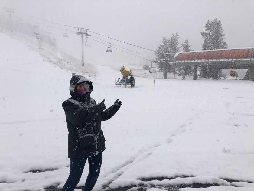 Eventually we went out into the snow by the golf course and watched the snow machines making snow. That’s always a cool thing to see.