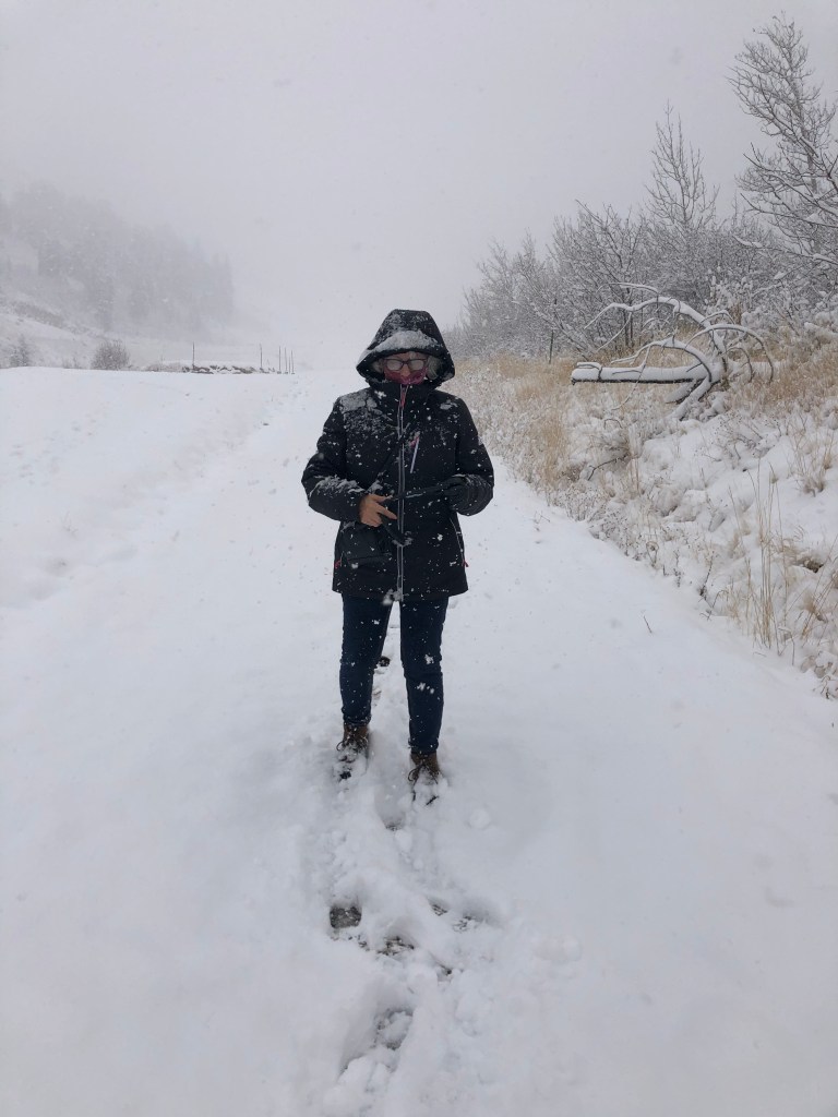 Anita is in awe of the snow blower, but all the snow blends in to the snow that’s already there. Take our word for it, it looked cool.