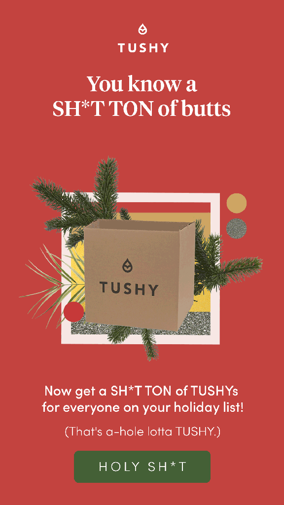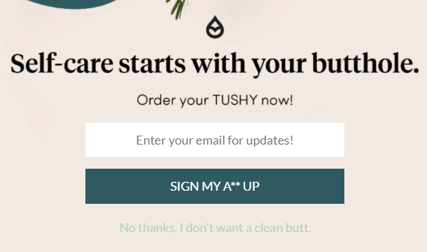 Why it’s a TUSHY, of course! The marketing team for this product must really have a blast, because they can’t avoid a poop pun for more than a sentence or two. Here, you see a typical email ad.