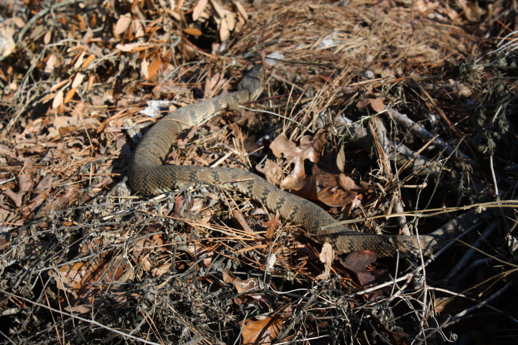 This is a thing I don’t think about often. But, that phrase rang a bell. Oh yes, my friend Donna in Master Naturalists wrote a little blog post about an encounter she had with a non-venomous water snake recently. It was, as always, sweet, because she is so kind to all natural life.