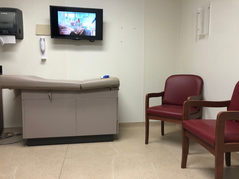 The County Health Department has the luxury of two closed hospitals to use in cases like this (thanks to all the rural hospitals closing down…moving on…). That meant there were lots of rooms for counseling and giving the shots. Everyone was SO nice. You could just see how happy they are to be doing this for our citizens.