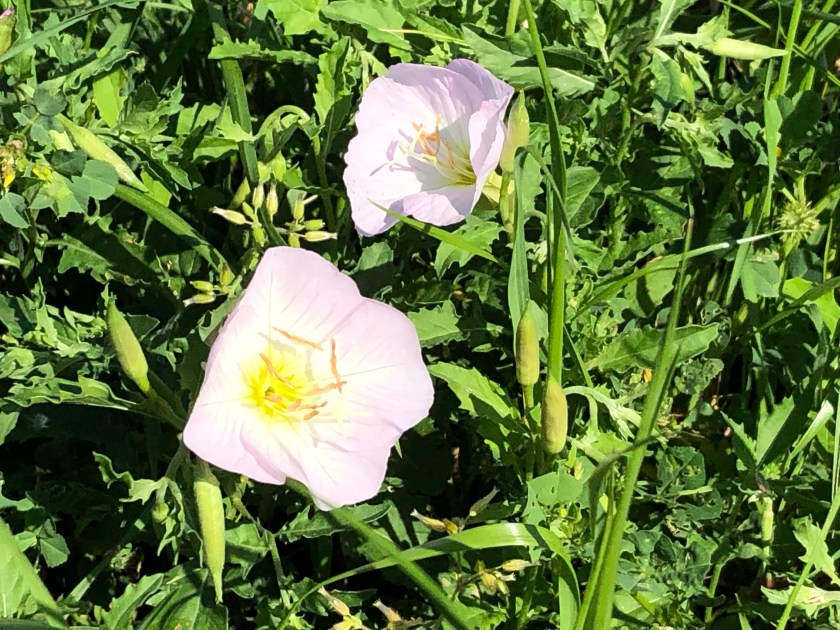 I finally found a blooming example of one of the plants I’ve been watching, velvetweed (Oenothera curtiflora). It’s another gaura, but grows much bigger and has lovely soft leaves. Every year I forget what that plant is until it finally blossoms.