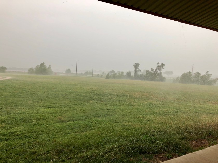 When the storm finally got to us, though, it was just very hard rain (of which the dogs are NOT fans), and a good amount, at last.