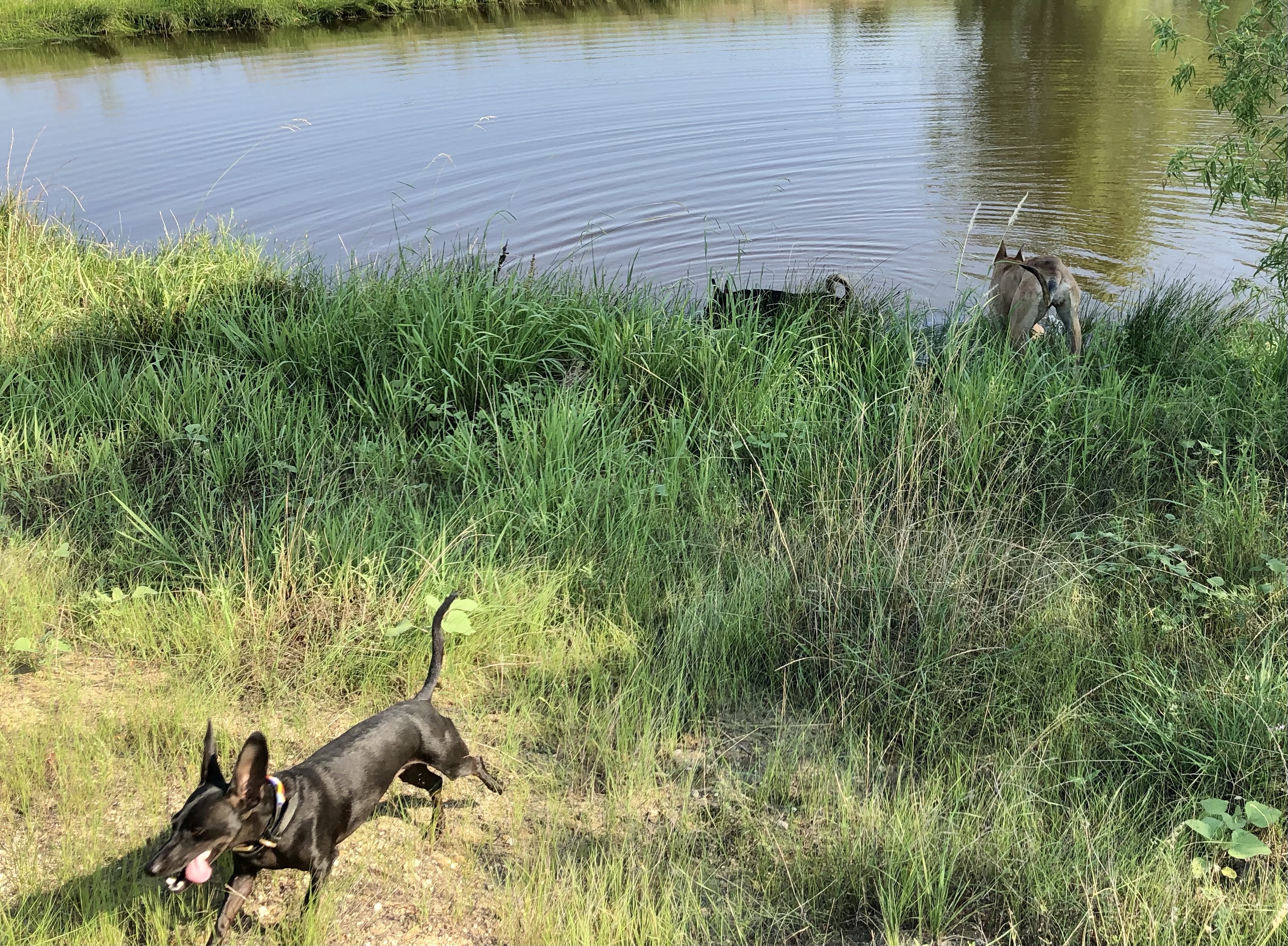 After work (and a fantastic conversation with my wonderful dear friend formerly known as Nancy Jo), we all went out to play. At least it wasn’t as hot as yesterday! After running around, they had to cool off.