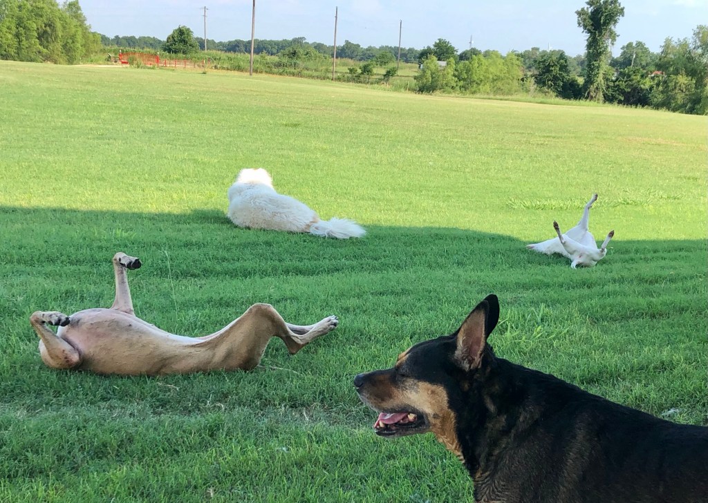 That tired them out, so they got on the ground to rest. Then they rolled.