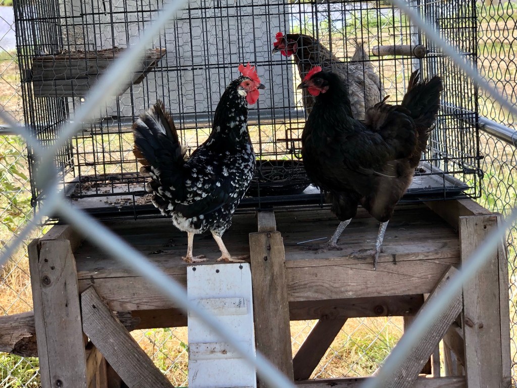 Finally, reading the backyard chickens for newbies group paid off. Someone shared that if you put a broody hen in a dog cage with airflow under it, they would feel the cool air under them and go back to normal. It’s called a broody breaker. Why, there’s one of those in our coop. So…
