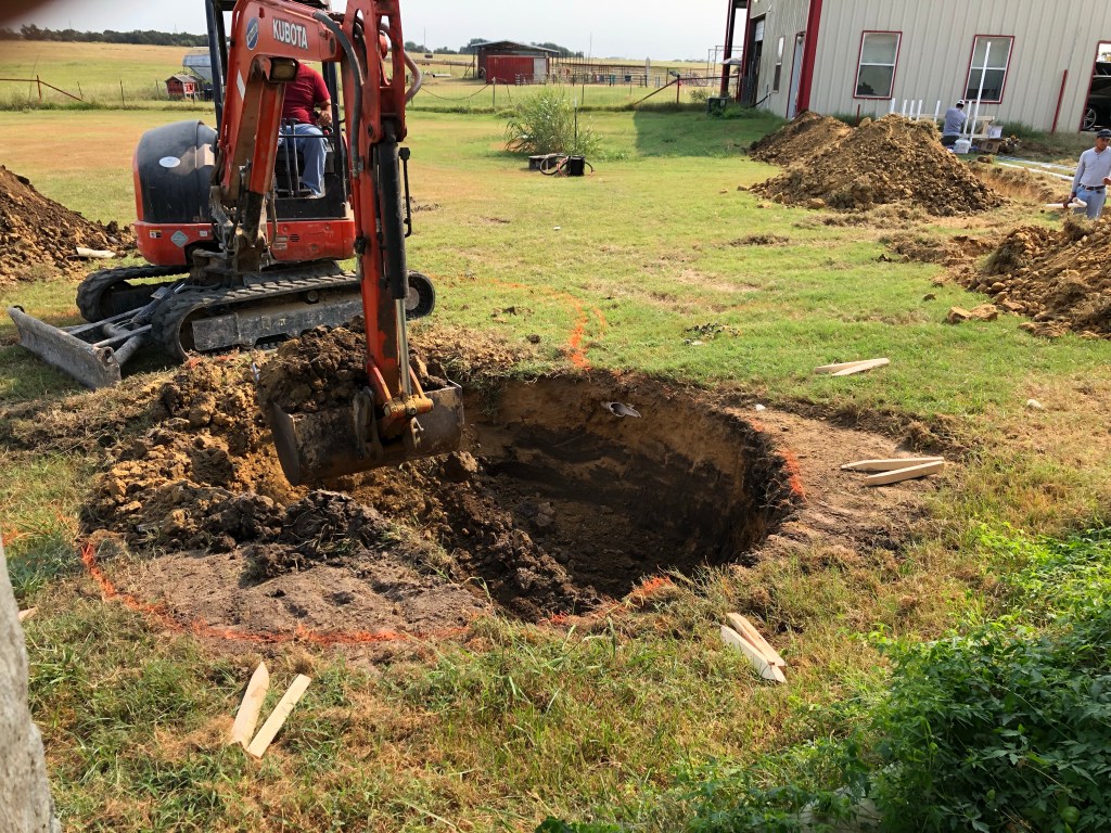 I was really interested in the hole they dug. You could see that the top layer was a lot of sand and fill that Lee and the builders put around the house. Next came very dark soil from when it was a pasture here. Some was very clayey.