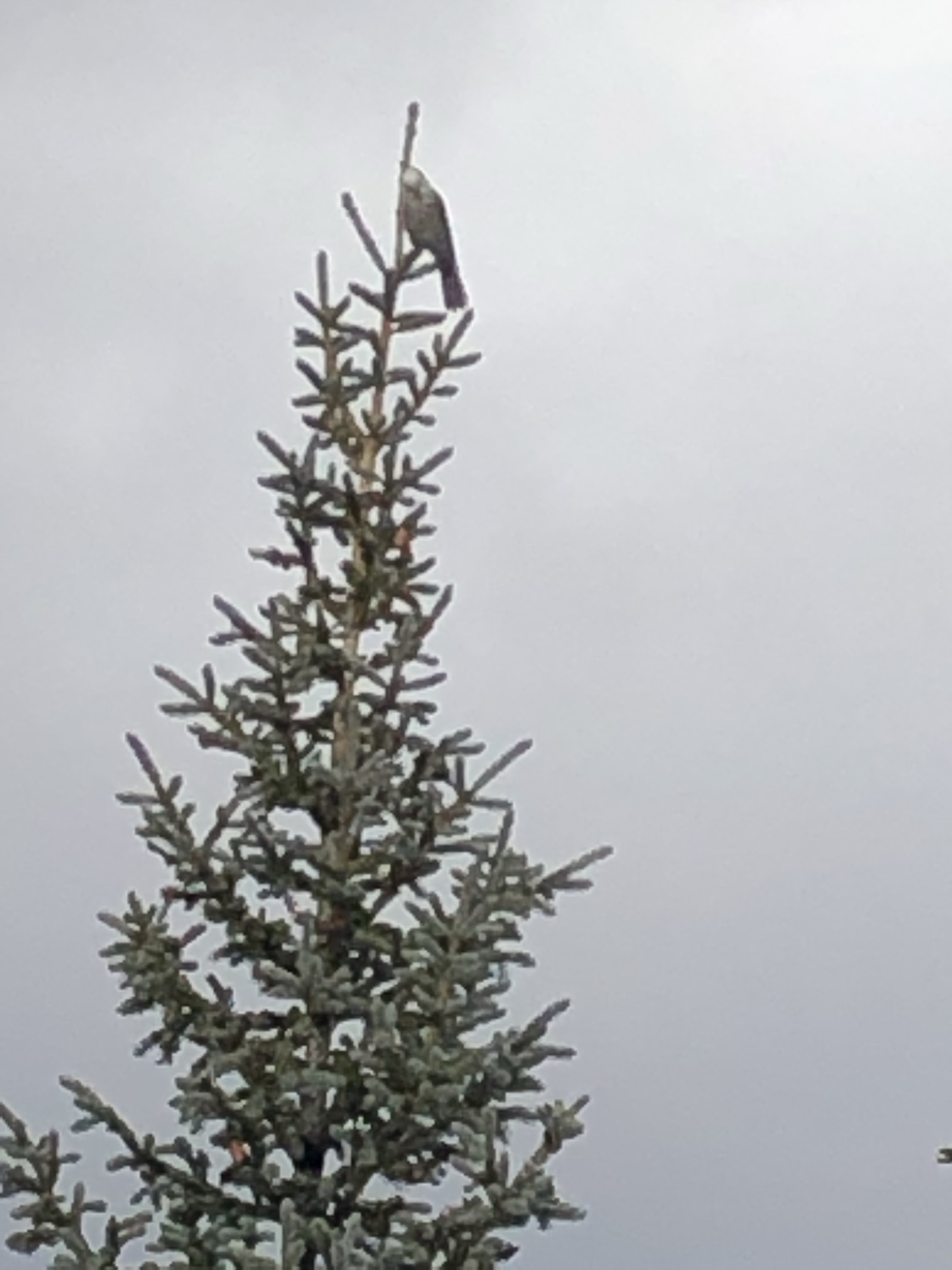 So I turned around, just like Stevie Nicks, and headed down that trail. I was rewarded with a new bird I’d never seen before. It is apparently a Canada Jay. It was pretty and flew around a lot so I could see it well. What a treat!