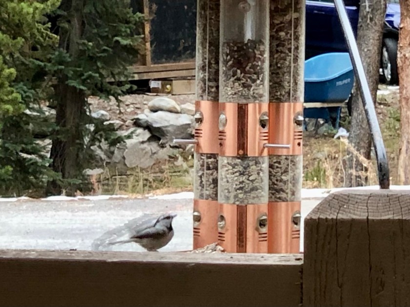 The Steller’s Jay came back and we discovered that there are two variants, and these are the southern Rockies version, which has white eyebrows that add so much to their charm. It’s just a spectacular bird, and the only crested jay west of the Rockies. So there.