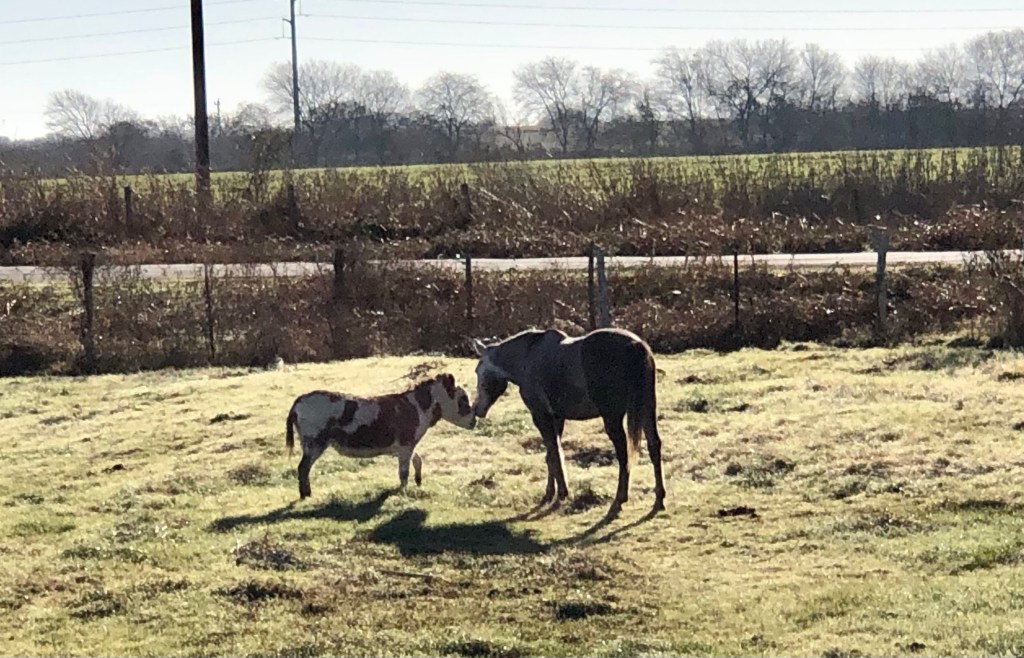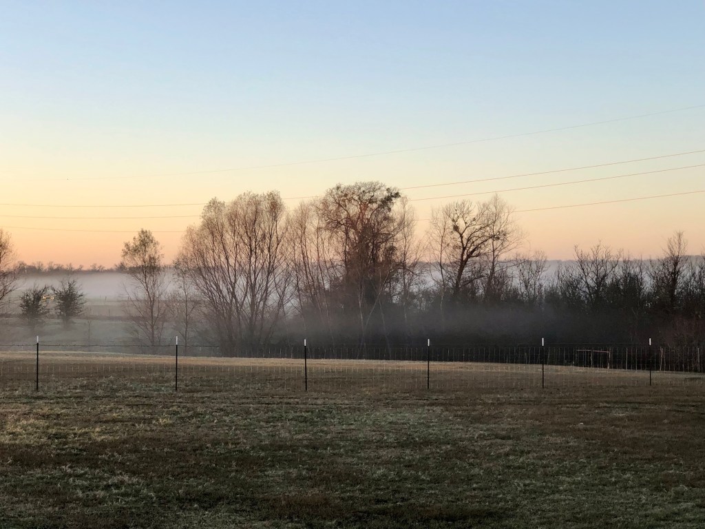 The fog had cleared by the time I got out to feed the chickens. Of course, I checked the horses. Wait, one was missing. Drew was not in his pen. The gate was open! Someone busted him out. My guess is that their name both started and ended with T.