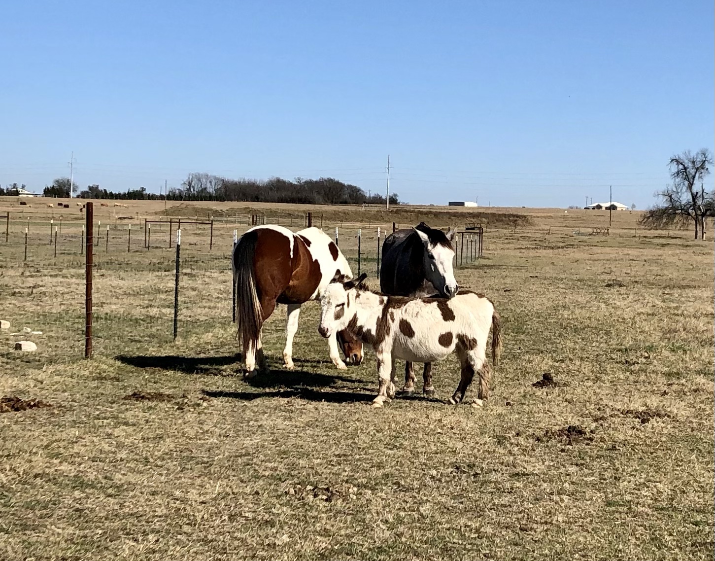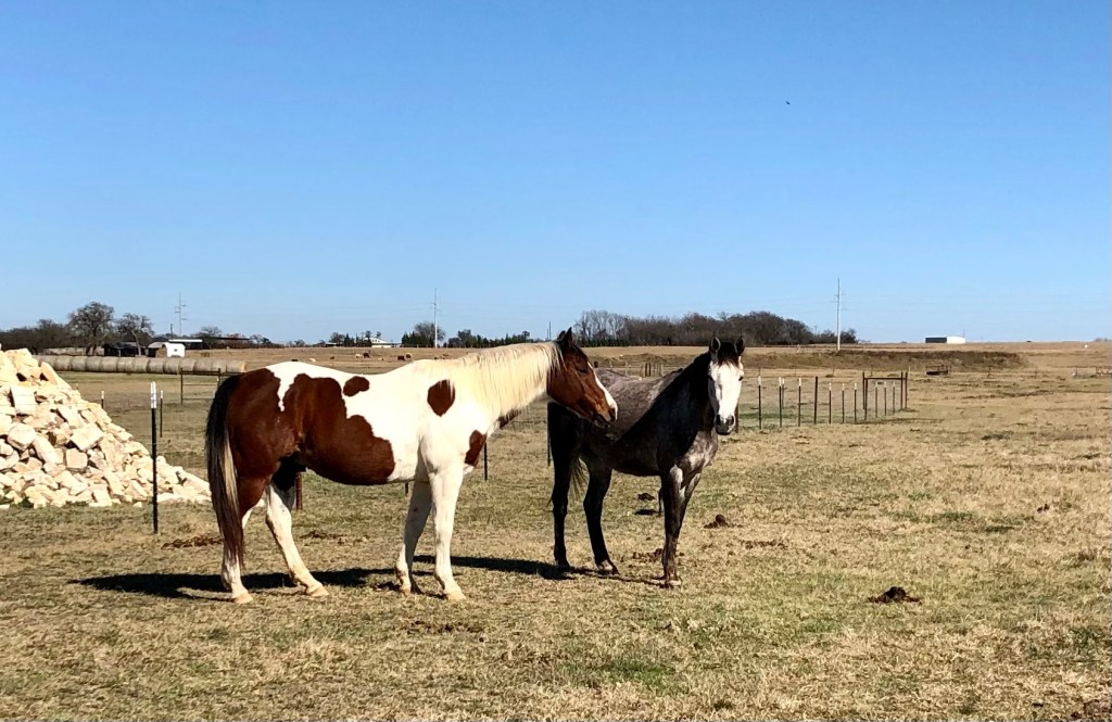 Each of them said hello nicely. Apache and Drew exchanged friendly nose touches and neck nips. Then came Fiona. There was a whole lot of mutual head flinging.