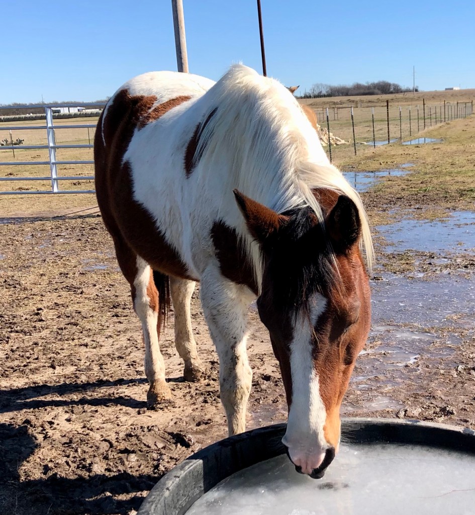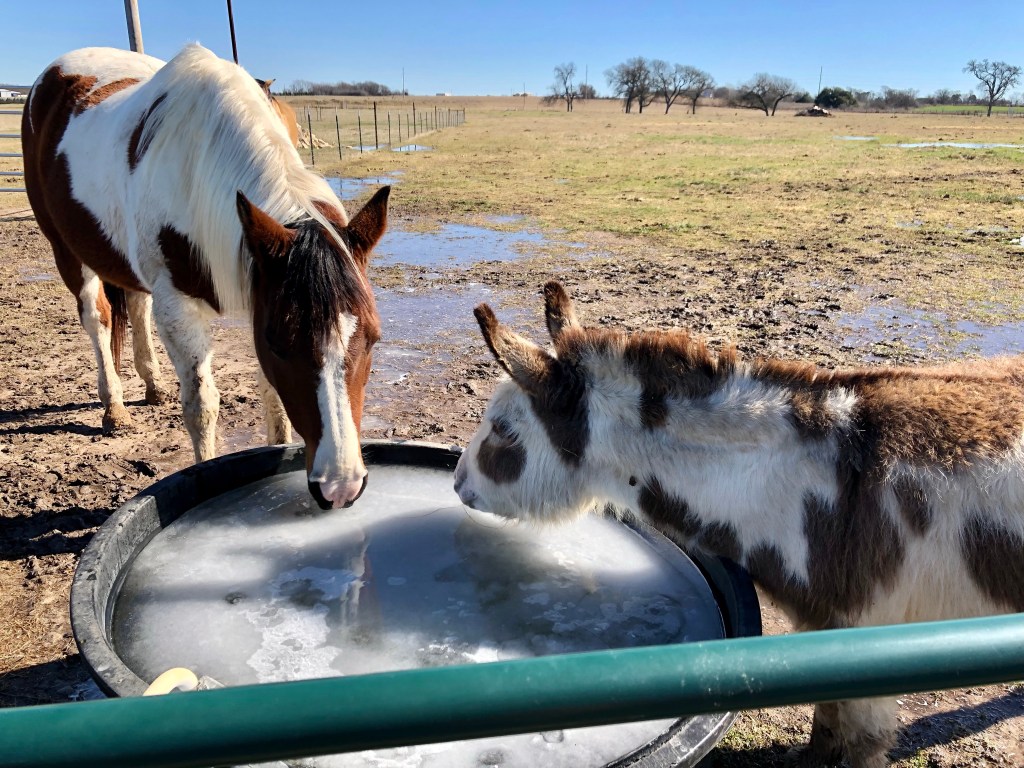 It was sweet when they went to drink out of the trough. Apache figured out that if he nosed the ice, water would come up and he could drink. That was fun, apparently.