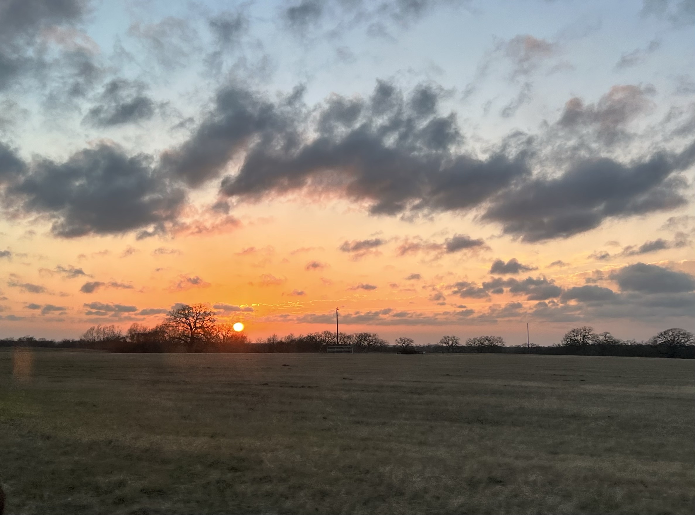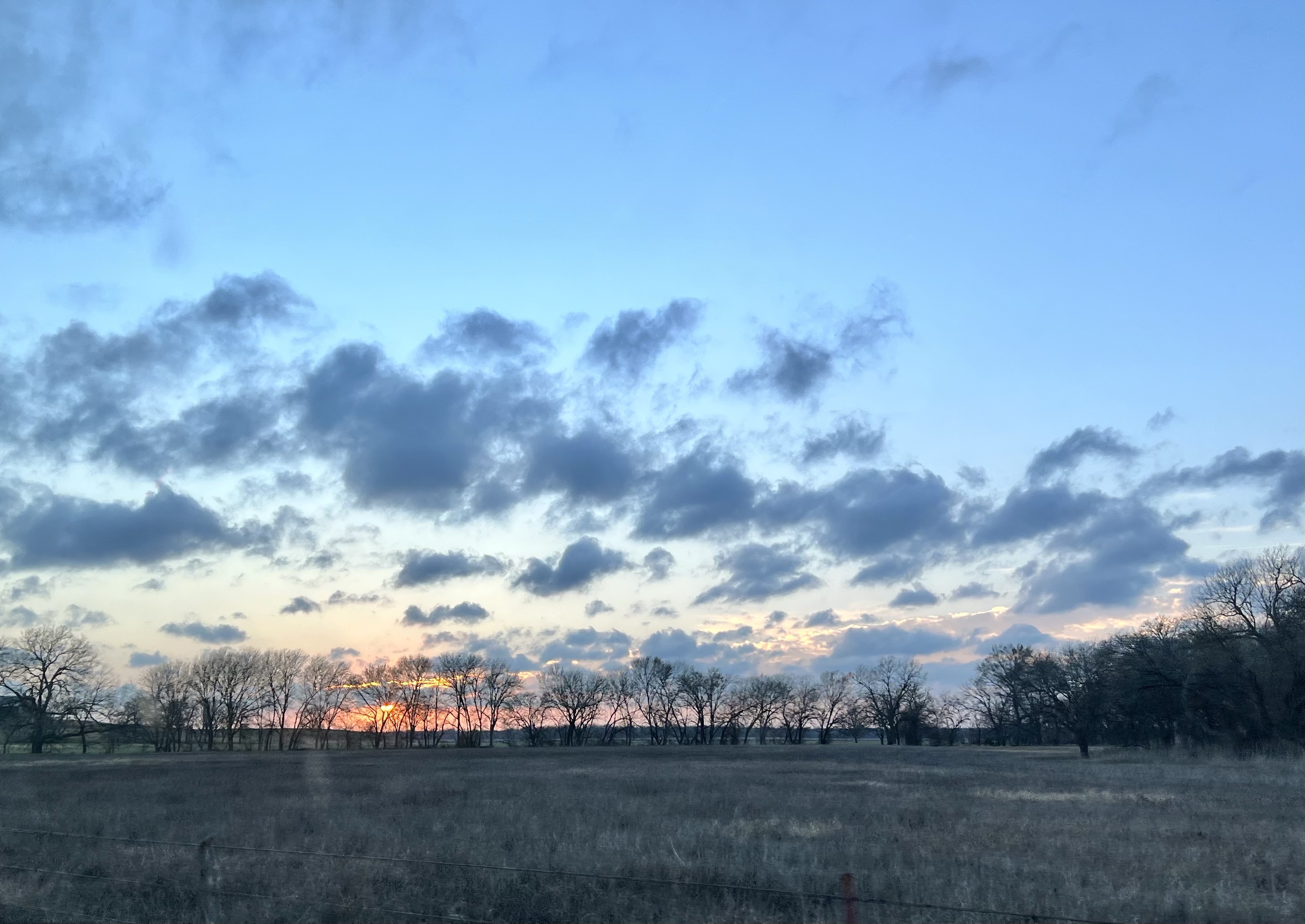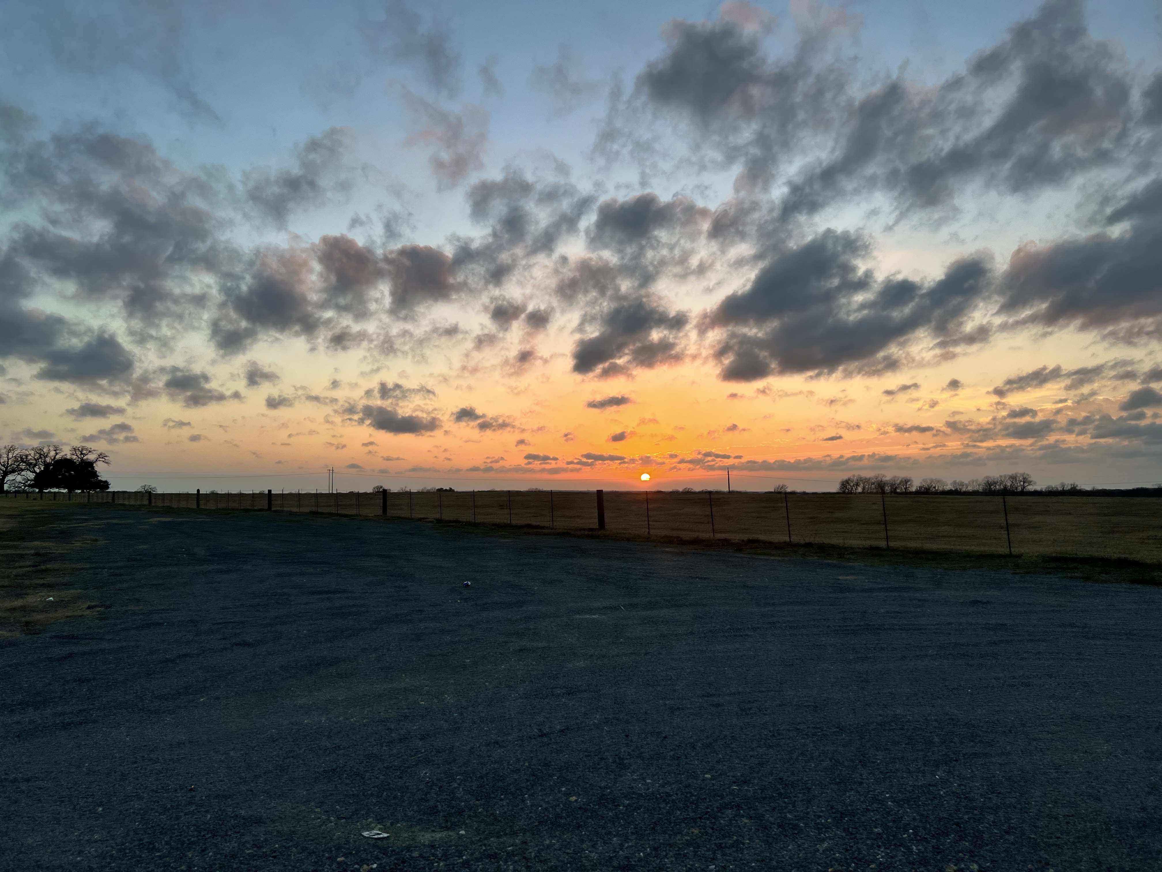 We were happy to realize that the sun was setting, which made our little drive almost magical. It was one of those sunsets when the sun went in and out behind clouds. Plus this road is a gorgeous well maintained dirt road, so it was fun to go down. We figure a county commissioner must live there, since our county is one of America’s great centers of potholes.