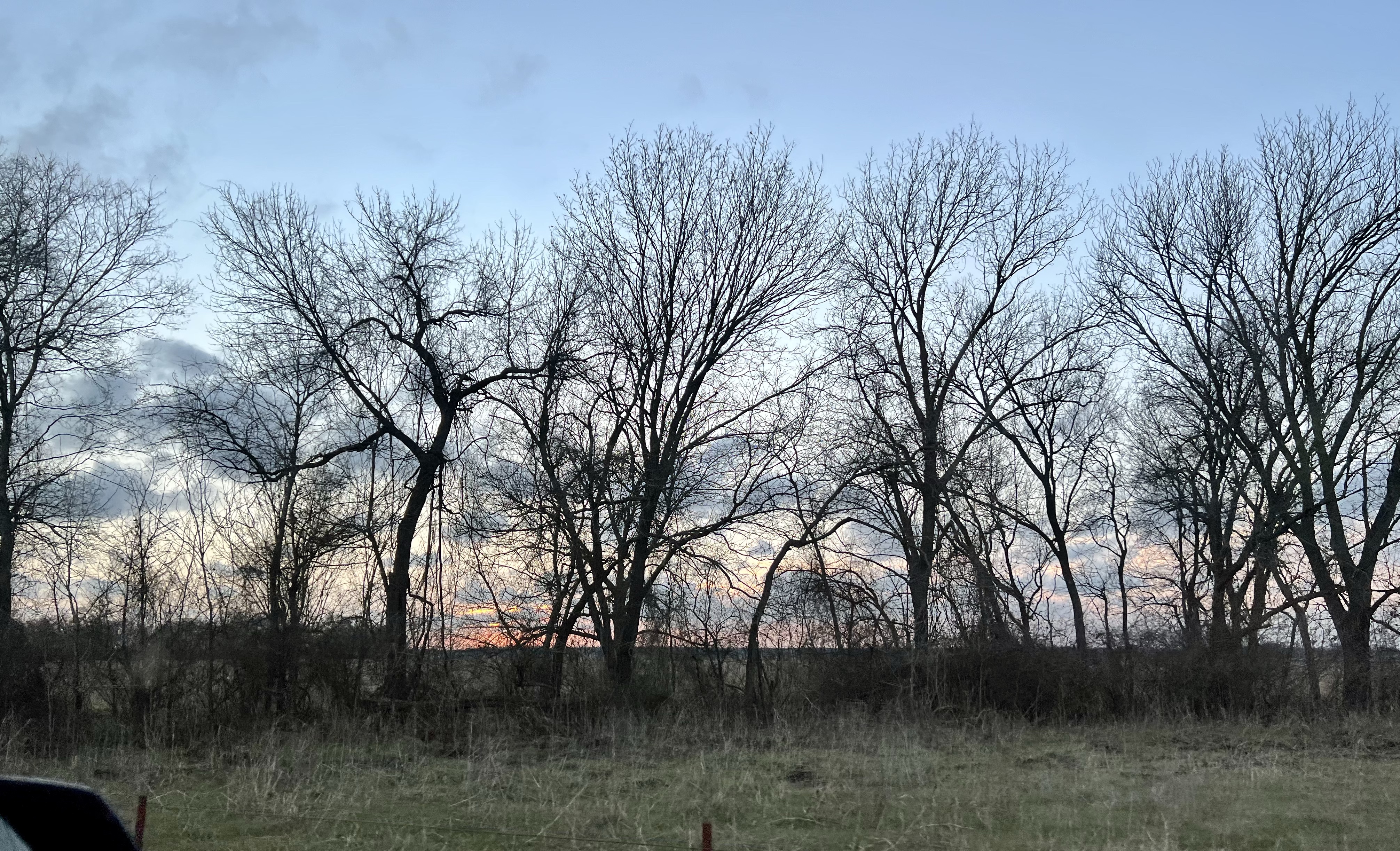 I highly recommend taking a scenic ride on a country road with your beloved on a winter evening. Exploring your own area can bring scenic surprises. It had been extra windy with blowing rain today, so the late sun was a treat. Enjoy riding along with us.