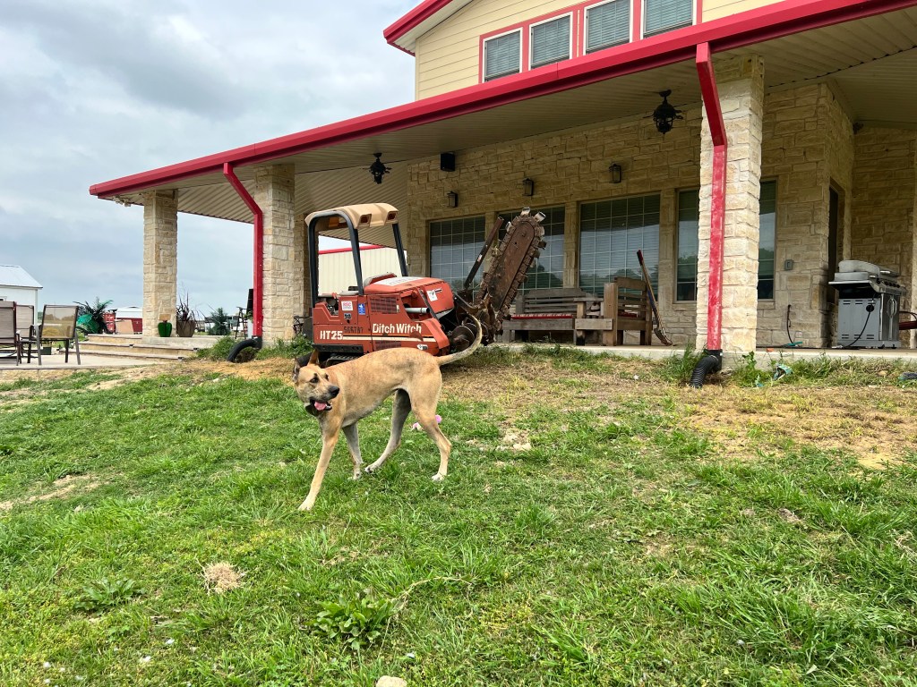 Since there will need to be trenches dug for utilities in the pool house, my guess is that the Ditch Witch will have an extended stay. That’s one handy machine. Lee dug our water line with it!