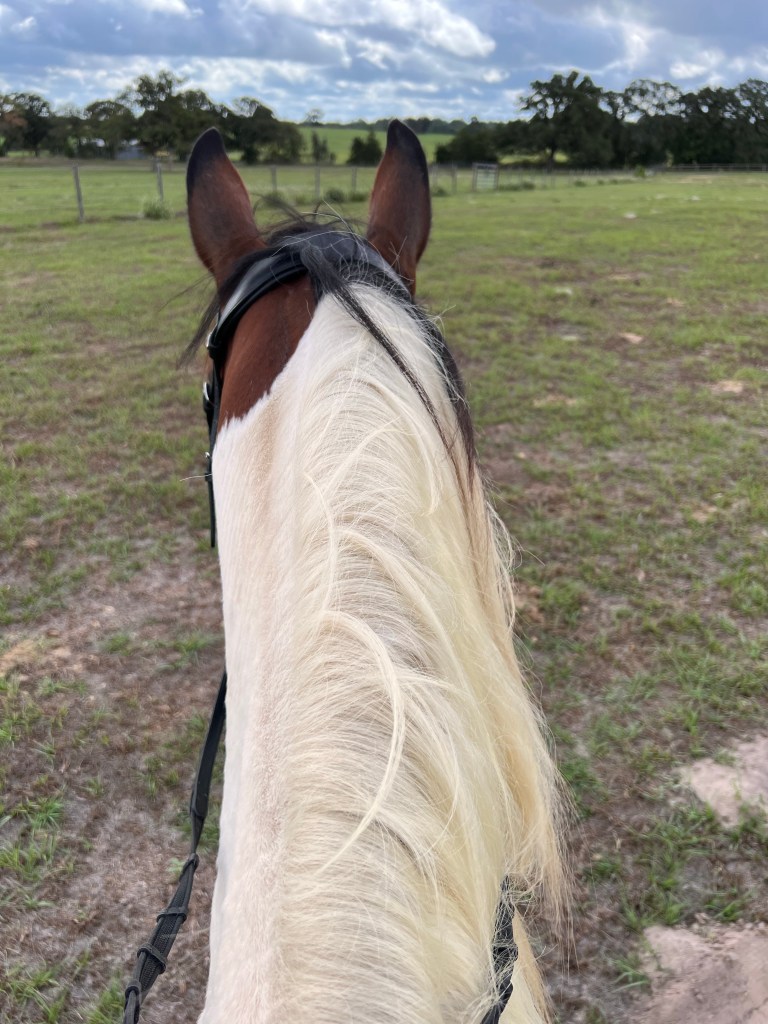 Now, we also each messed up a couple things. I bought a bridle that I didn’t research well enough. And Apache didn’t want to do anything involving moving sideways. He would not move his rear to line up at the gate, and he did a really crappy job of side passing. Now we know what we need to work on!