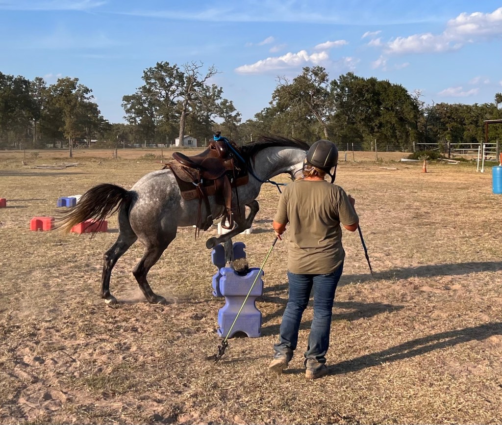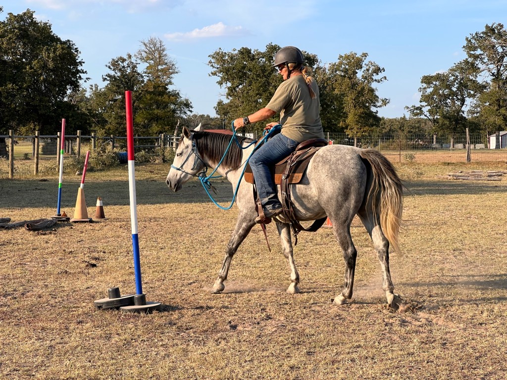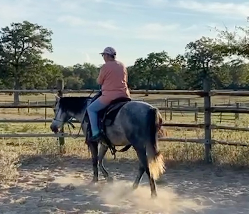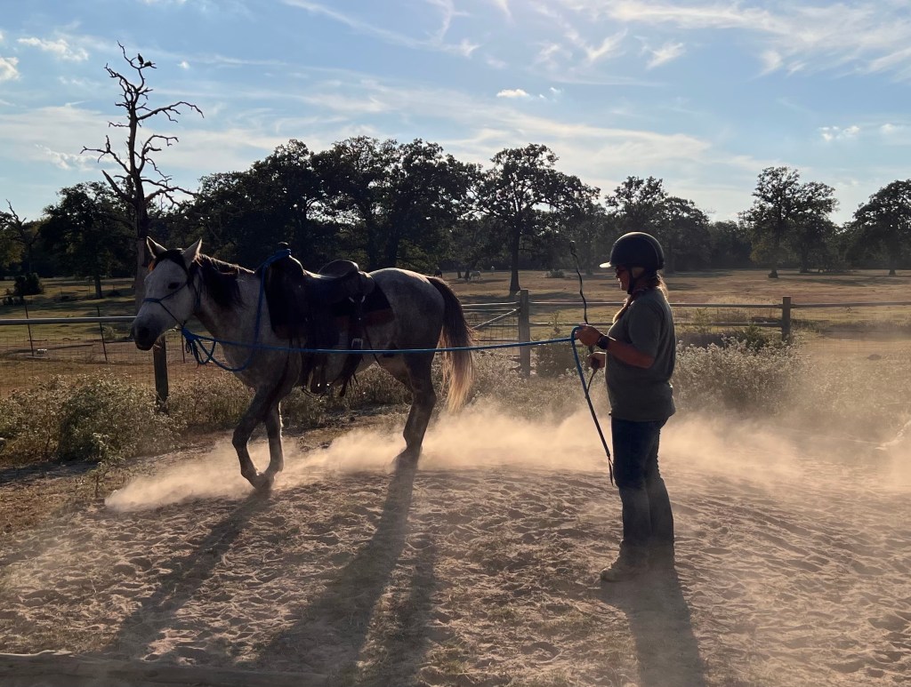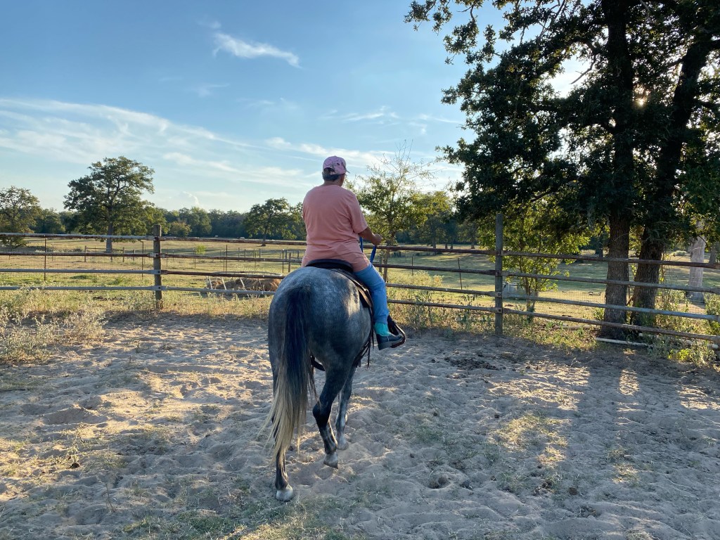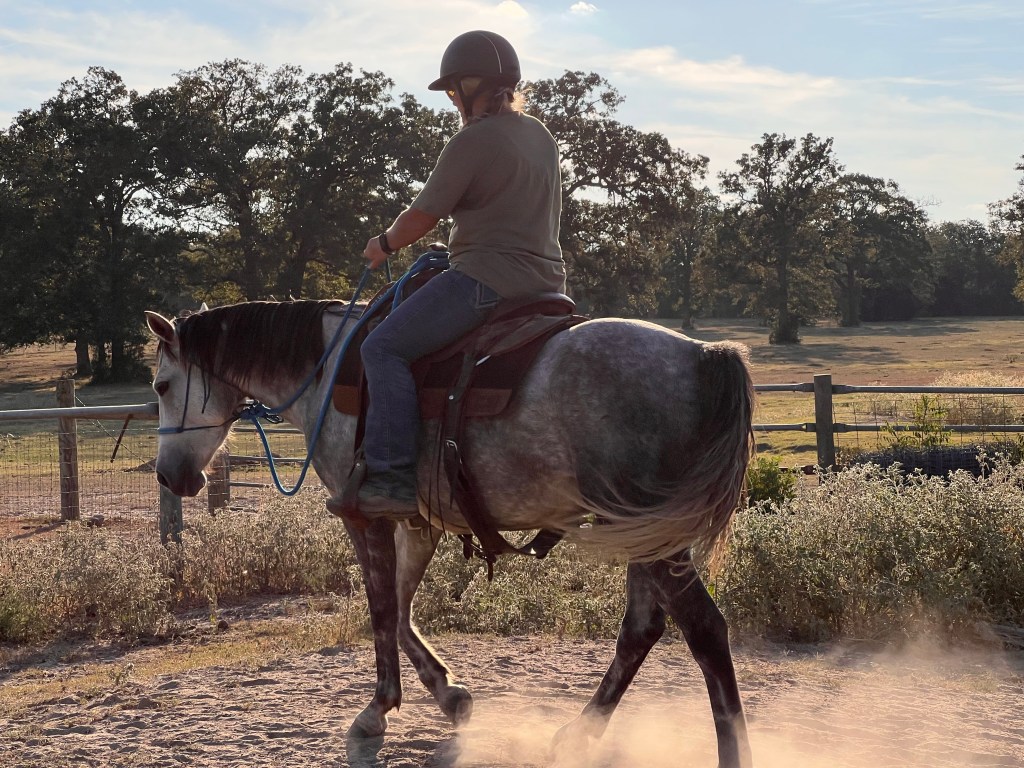 As a teacher of adults, I appreciate someone who’s good at it. Tarrin is so patient and consistent with people, and she’s training them way more than training their horses! Thanks to her help and lots of practice, I can do this: