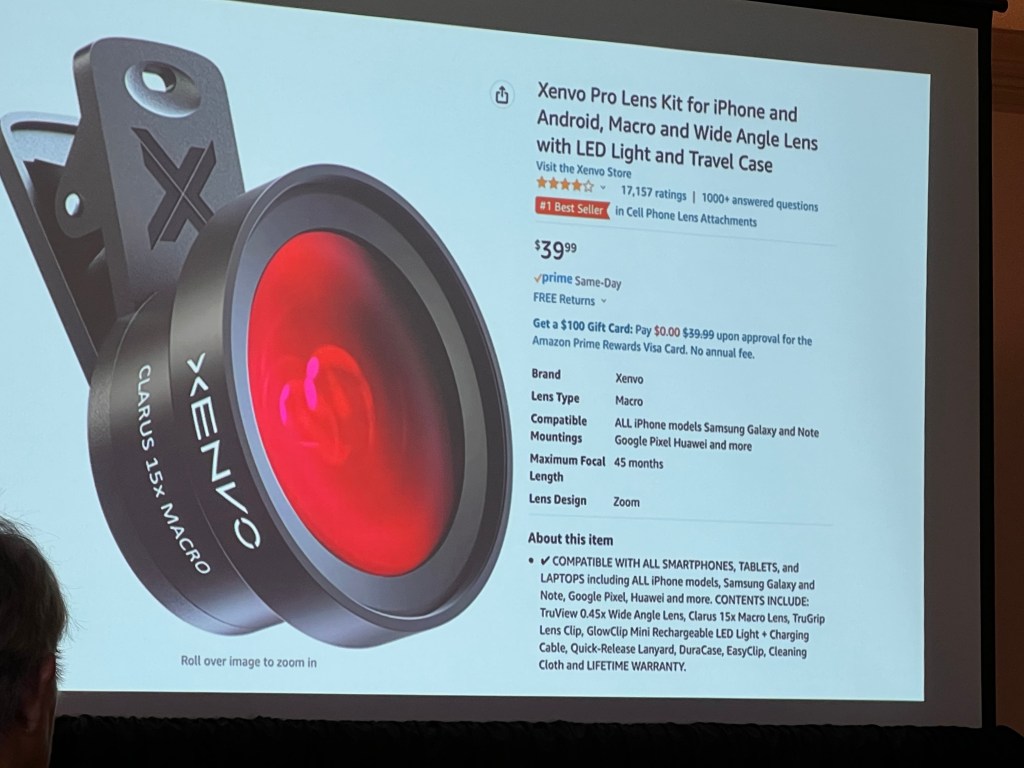 I took photos of some of the ideas she shared, especially for digital cameras, in case I can ever get one. There was also a cool attachment that lets you take better close ups on the phone. Attaching that to the 3x camera on my phone should be fun to try.