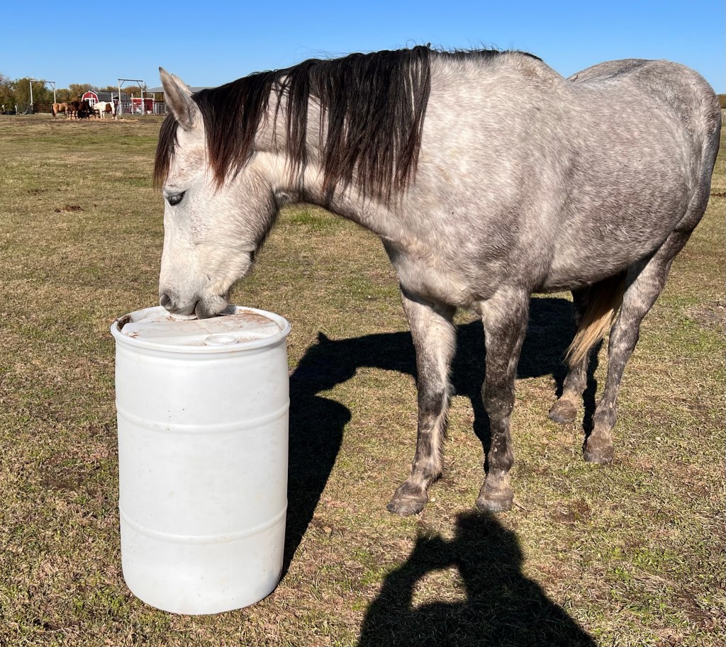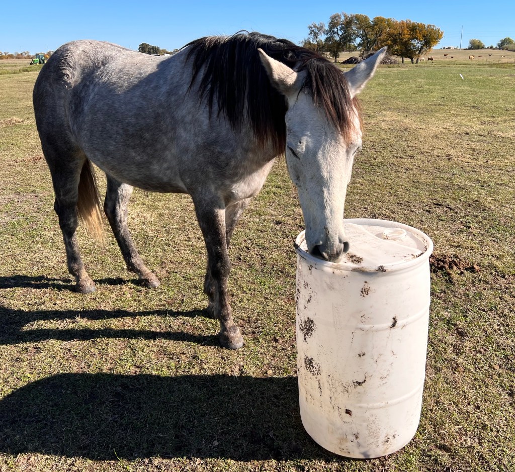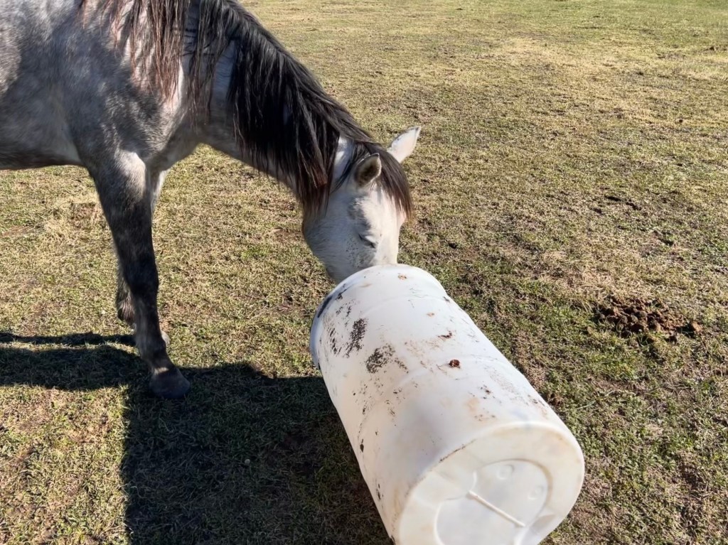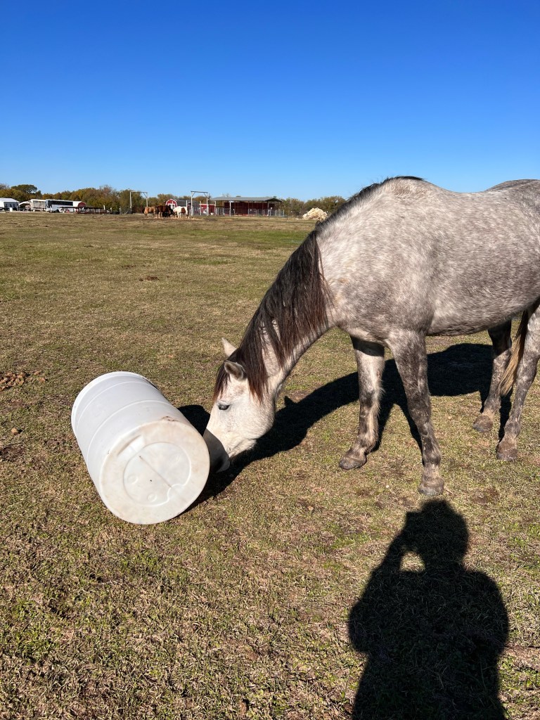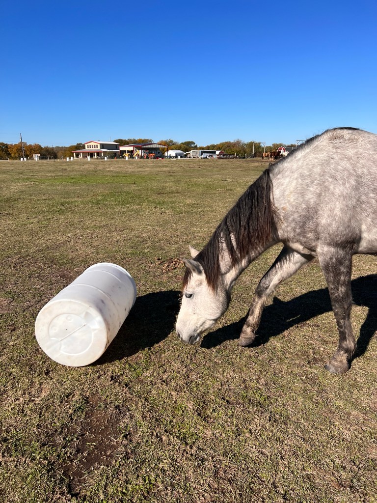 I ended up filming him pushing it around, and had to laugh when Apache joined us and had no interest in the barrel. I happen to know he does like barrels, so I bet he plays later!