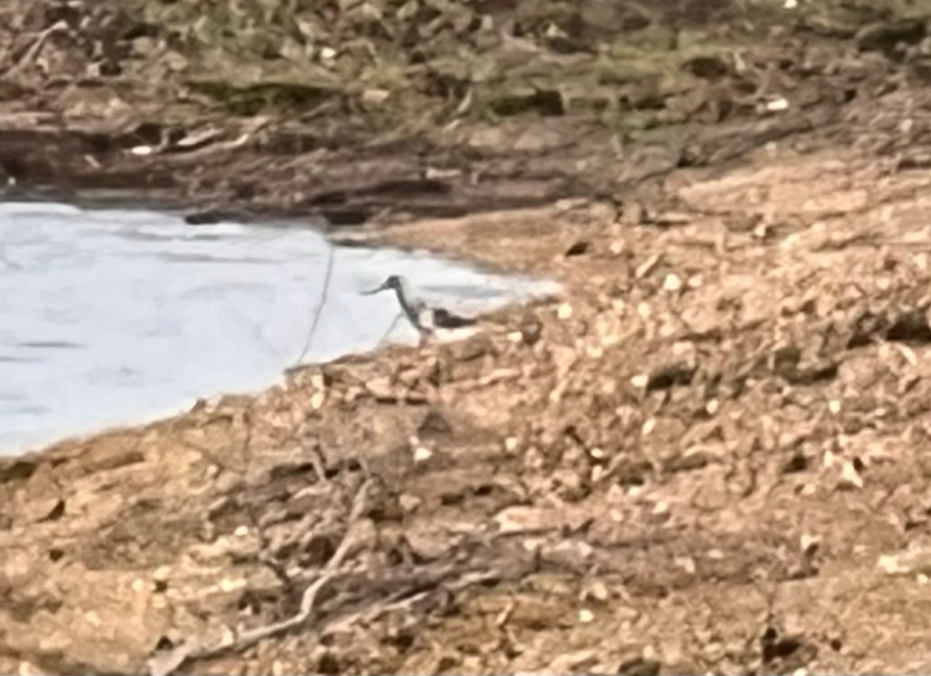 Other than that, it’s the usual. In bird news, I got a photo of the greater yellowlegs who’s making its annual visit. I love the sounds those guys make. I realize this photo isn’t great, but you can at least recognize its shape and bill. My “photos” of the weird kingfisher who has been visiting didn’t even capture its distinctive shape, and no matter how hard I try, I can’t get one of these darned lark sparrows to hold still. Why won’t the birds come closer so I can get an ID?