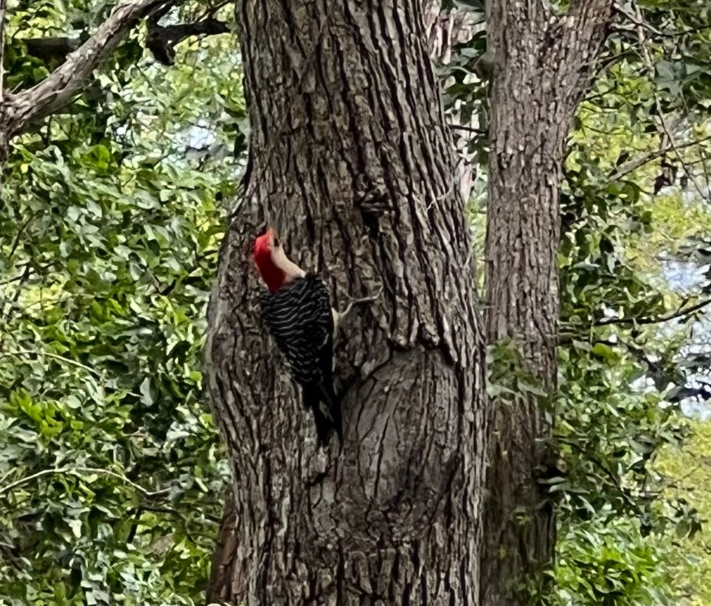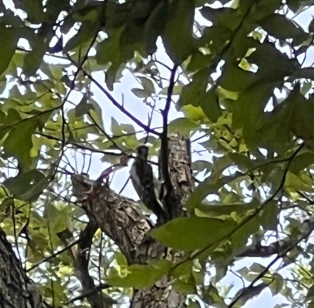 And finally, I didn’t have to go far to see woodpeckers, either. A downy showed up. I like these little birds almost as much as the incredibly entertaining yellow-bellied sapsuckers (they are the smallest woodpecker). My photos weren’t great but I got to see it well through binoculars. The red-bellied male came over so often that I got the feeling he was used to us.