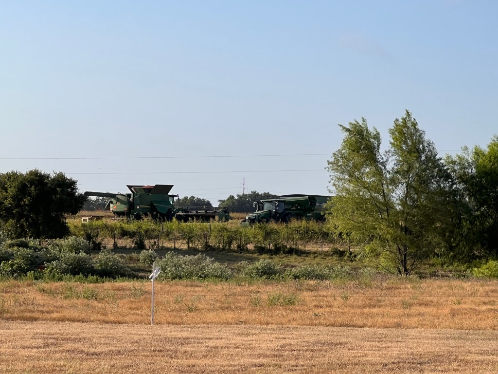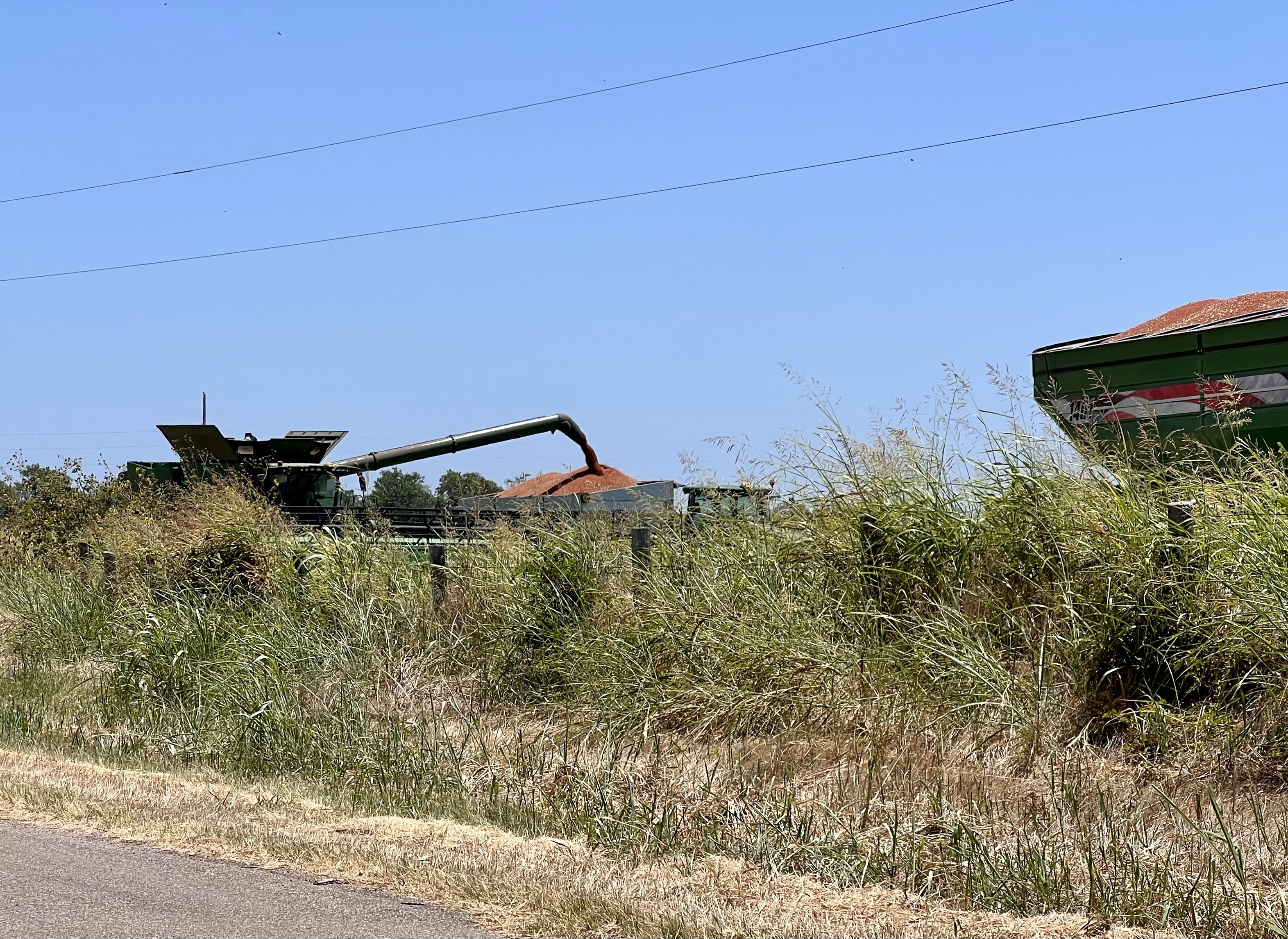 Last year it was cotton. I hate cotton years, because they spray herbicides, which messes up me trying to grow anything. This year I believe the crop is sorghum, which they also call maize here. It’s been really pretty the last few weeks, as it’s a reddish orange.