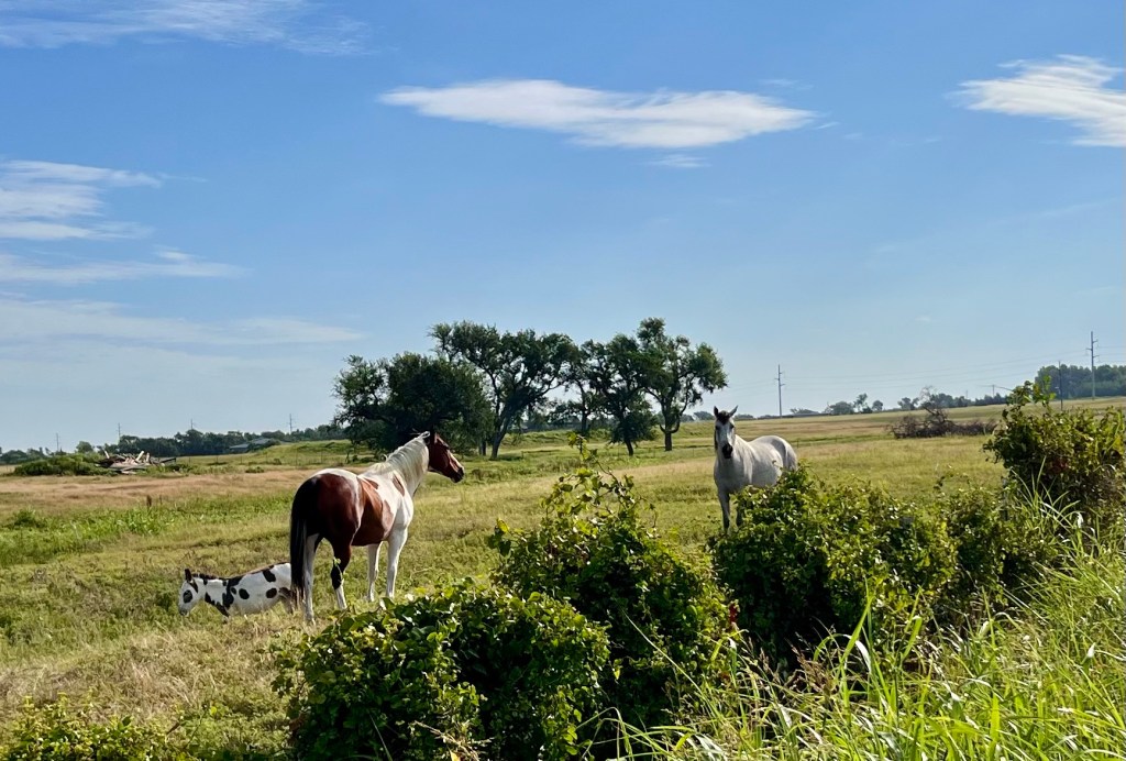 I think the livestock were the happiest with today’s weather. The wind or “something gray” blew open the gate to the back pasture, so I found the horses far away at horse time. They liked that. Plus, Bianca, the lone chicken, was practically her old self today, since it didn’t get over 90°. She was out catching insects and sitting in the water trough like a happy hen.