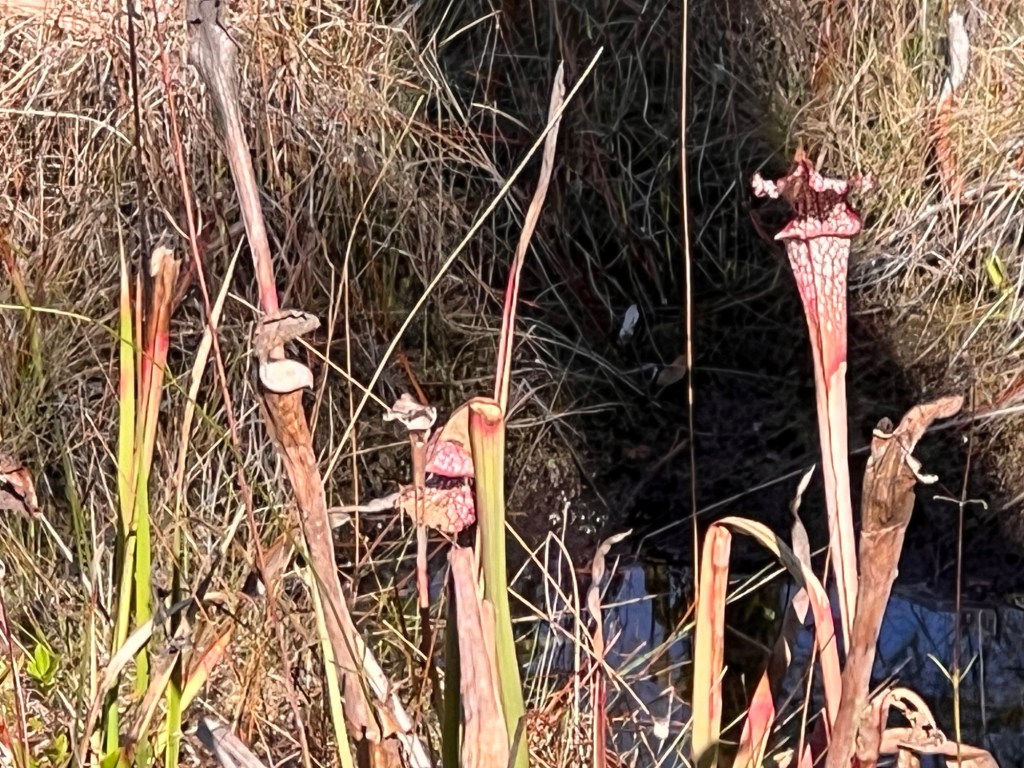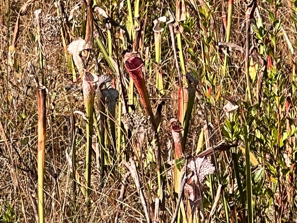So glad you got to see the pitcher plants! Again, you’re stirring memories from my childhood. The “farm” I lived on in south Alabama as a child included a swamp and a beaver dam that formed a small lake on a creek. And Pitcher Plants – I always peeked inside if they were near the path, to see what little critters had been lured into the leaves to be eaten. I wasn’t “allowed” to go down to the creek and out on the dam alone – but I did. Sorry there were no flowers for you to see and photograph – they’re interesting too. They were like red umbrellas, about 2″ across – in my memory of 70+ years ago.