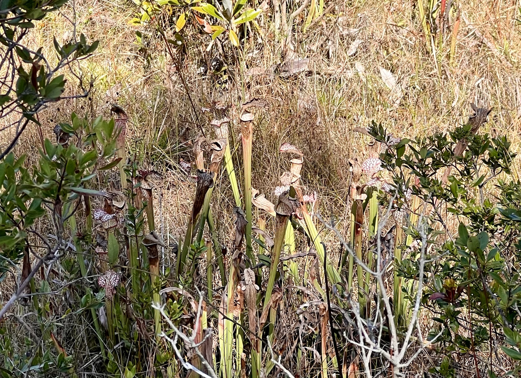 The pale pitcher plants (Sarracenia alata) were most numerous, and amused me, because they looked like little mouths.