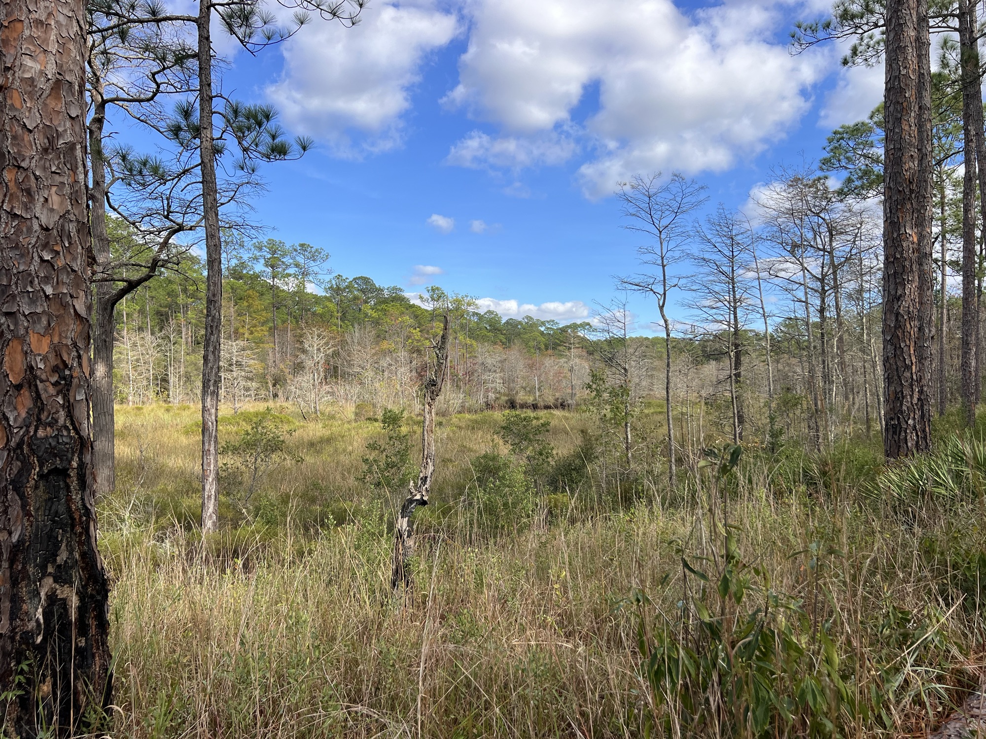 It’s in a beautiful wet pine forest with lots of wet areas leading to the serene and quiet bayou.