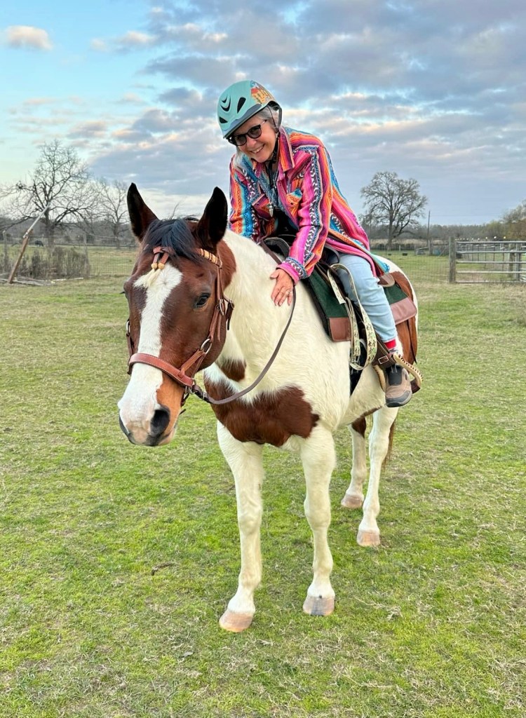 And our riding partnership is finally where I’d wanted it to be. Riding is fun at last, not frustrating. Persistence! We can do more than just start, stop, walk, and trot. Yay! We CAN do subtle changes and go sideways and all that. We are slow, but we keep at it.