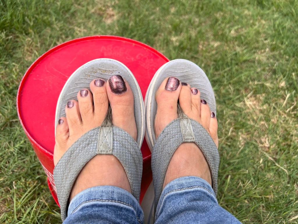 I used to always say my favorite thing about myself were my feet. They were not too big or small, medium width, and had nice toes. Now they are more mature feet with mature person issues. So, nope, it’s not my feet.