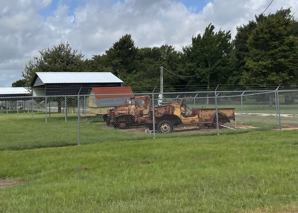 I’m sitting in the driver’s license office in scenic Hearne, Texas. It’s in a weird spot in the westernmost part of the town, making it only 25 minutes from my house. It’s really an odd spot, right next to the remnants of a POW camp for Germans from World War II. You can see the old watch tower and building foundations right outside the driver’s license office.