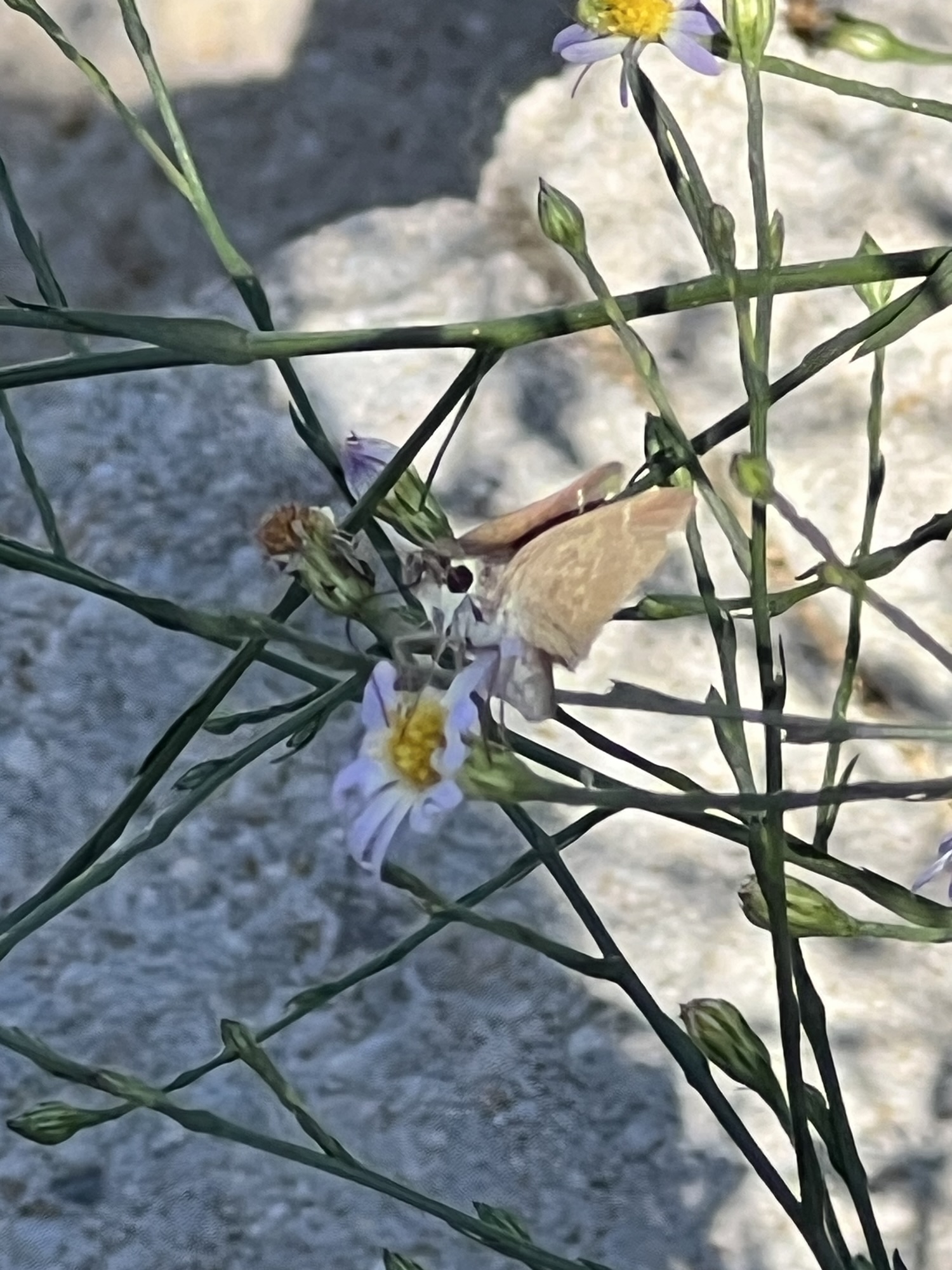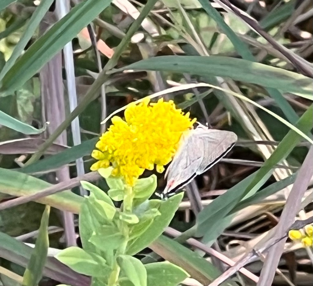 Another popular plant is the southern annual saltmarsh aster (Symphyotrichum divaricatum). They will be blooming until frost. Many tiny insects flit around them, probably wasps. I can’t get them to hold still. But I can catch a few butterflies (these are from today).