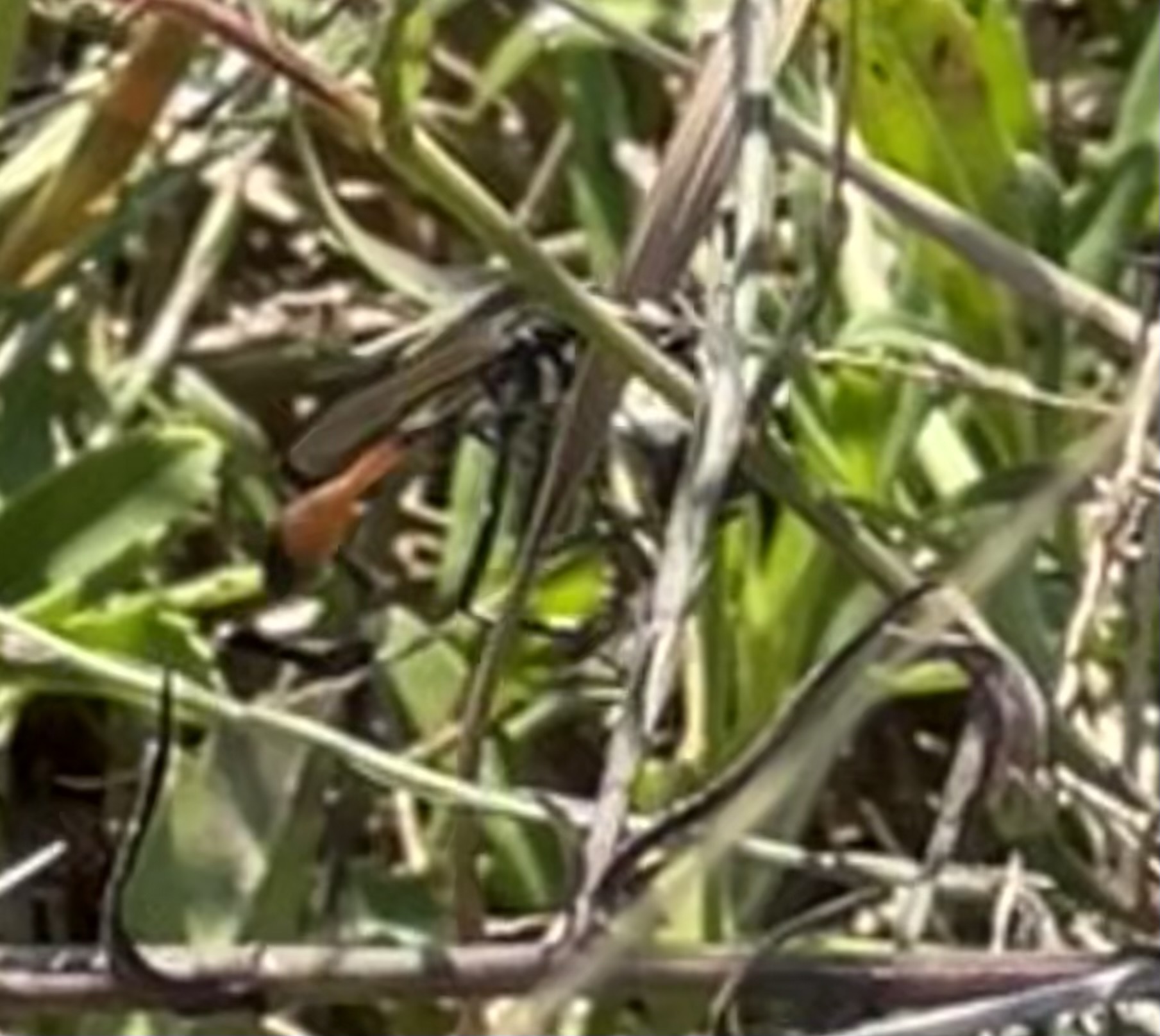 Today I spent a few minutes on my way to the mailbox dawdling around the big pollen producer of the moment, goldenrod. We have a patch of tall goldenrod (Solidago altissima) on the dam that creates our driveway. It’s literally buzzing with activity right now, predominantly bumblebees and wasps, but there are also a few honeybees, butterflies, and bonus insects. It’s fun to watch them darting around.