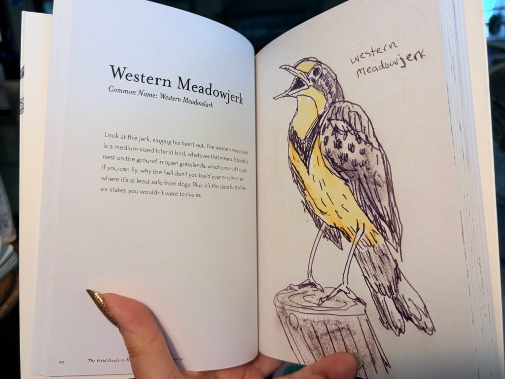 I got this little book from 2019 yesterday and found it necessary to plow through it last night before I went to sleep. Matt Kracht, the author, tries to present himself as a curmudgeonly bird hater who hates all that screeching and pooping birds do. But you can tell from his charming and accurate drawings that he’s secretly quite fond of birds.